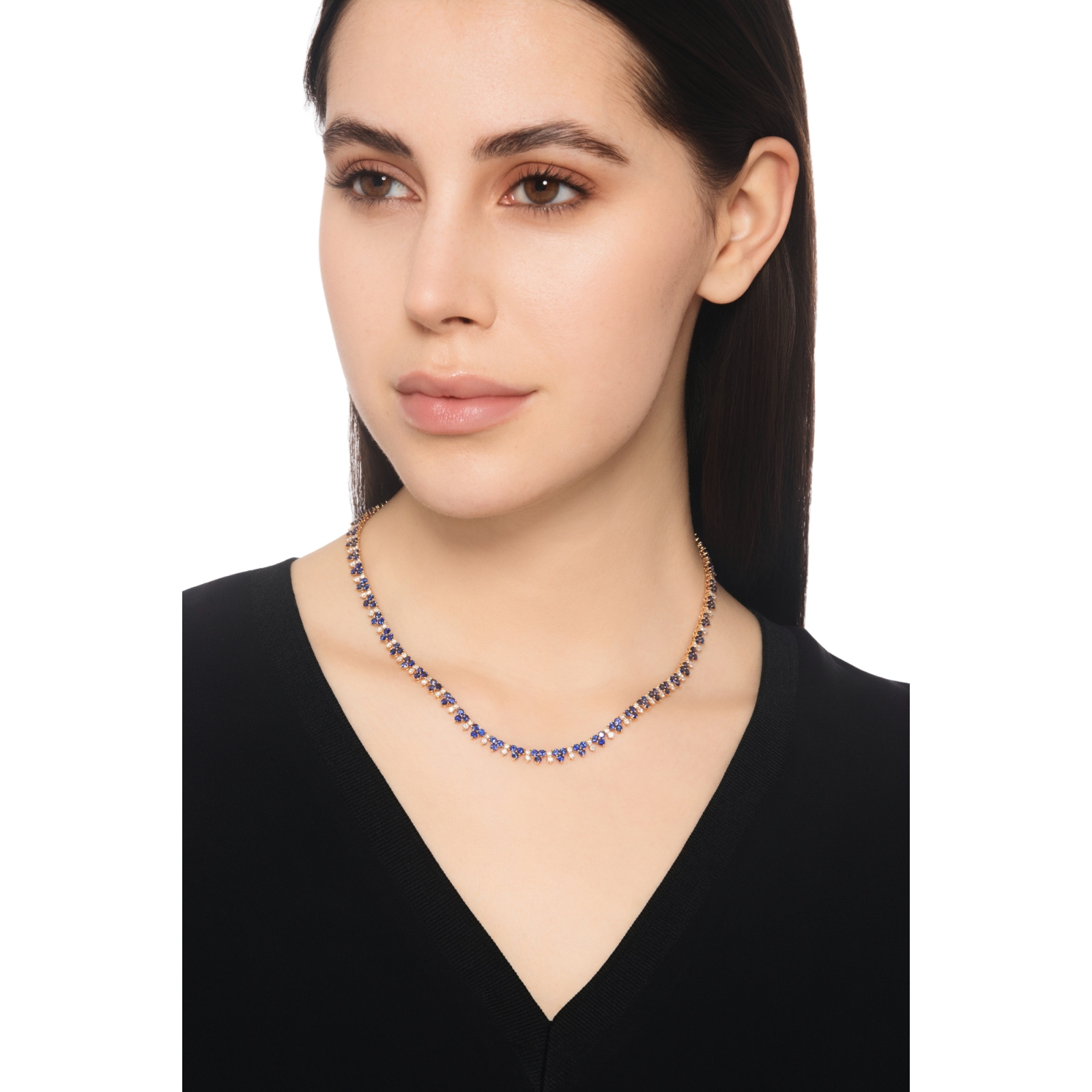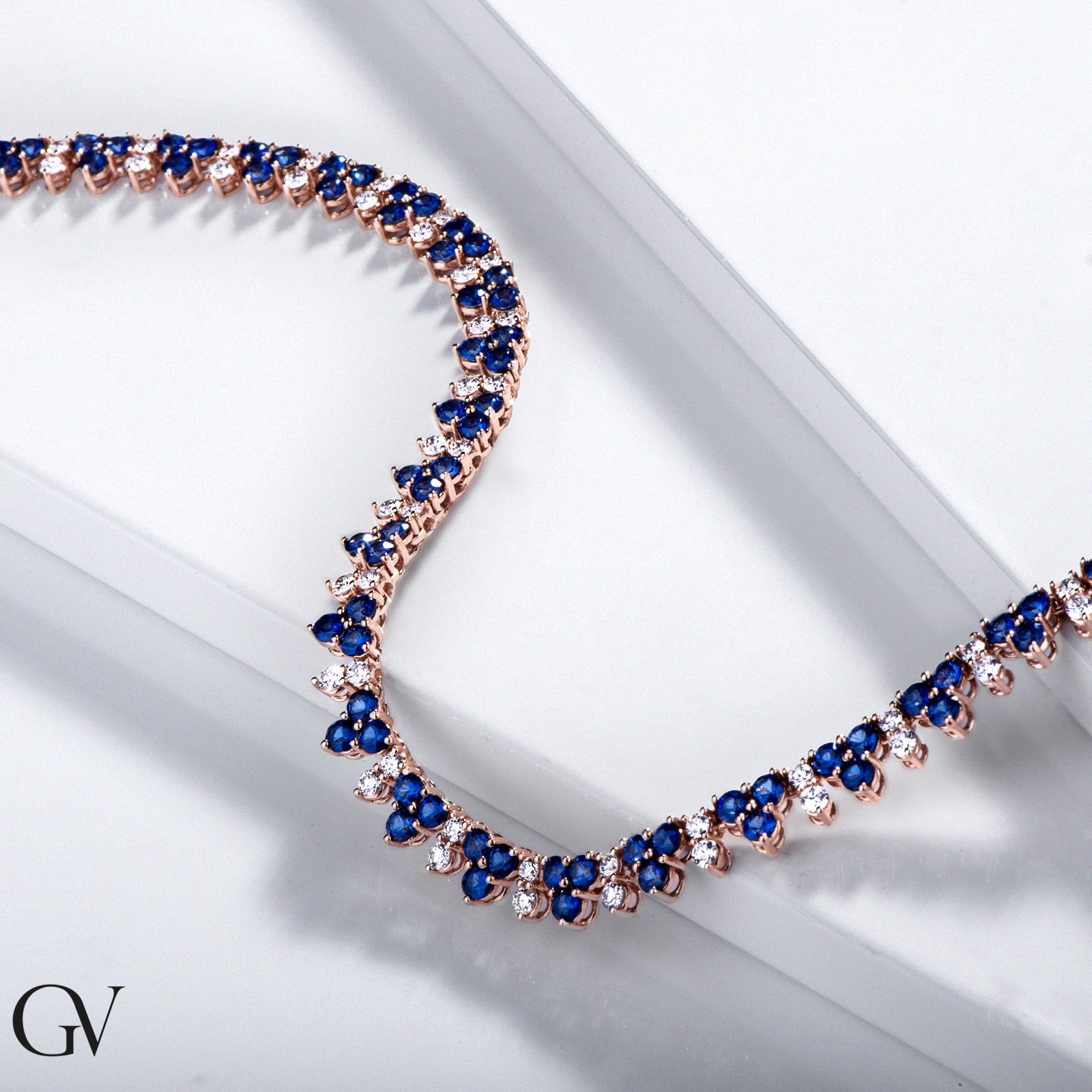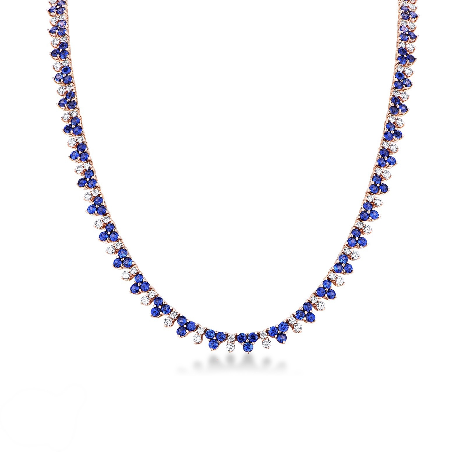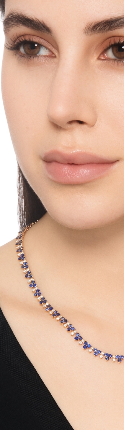 Collier tennis or rose 18k avec saphirs bleus et diamants