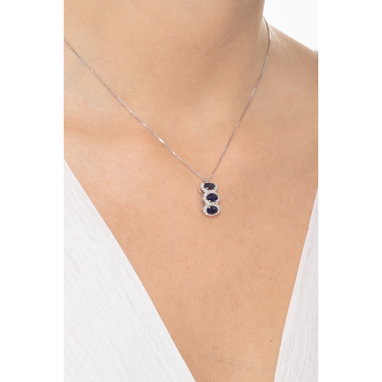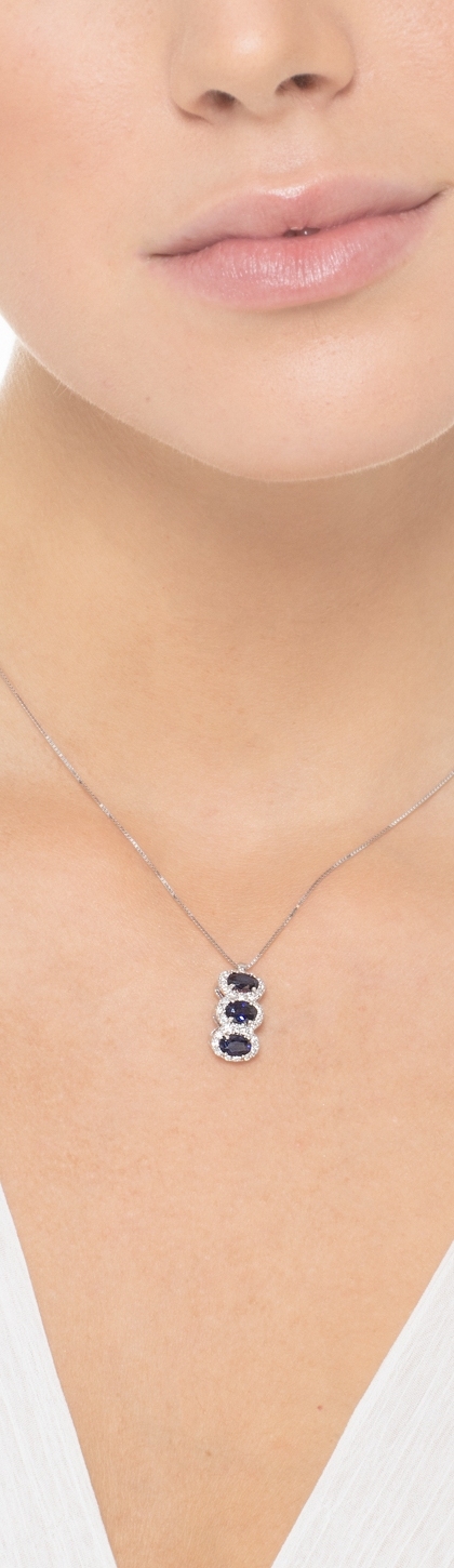 Collier en or 18k avec trois saphirs bleus ovales et diamants