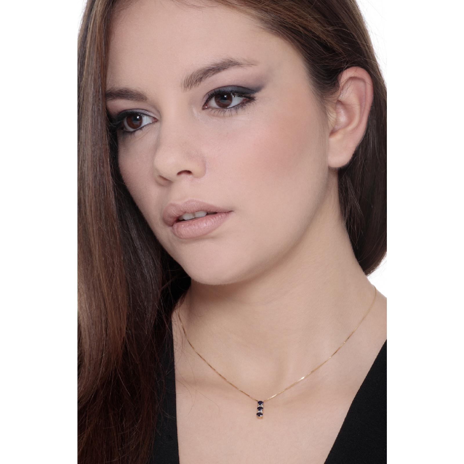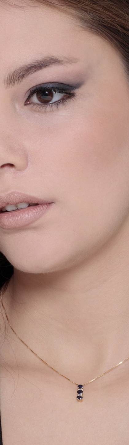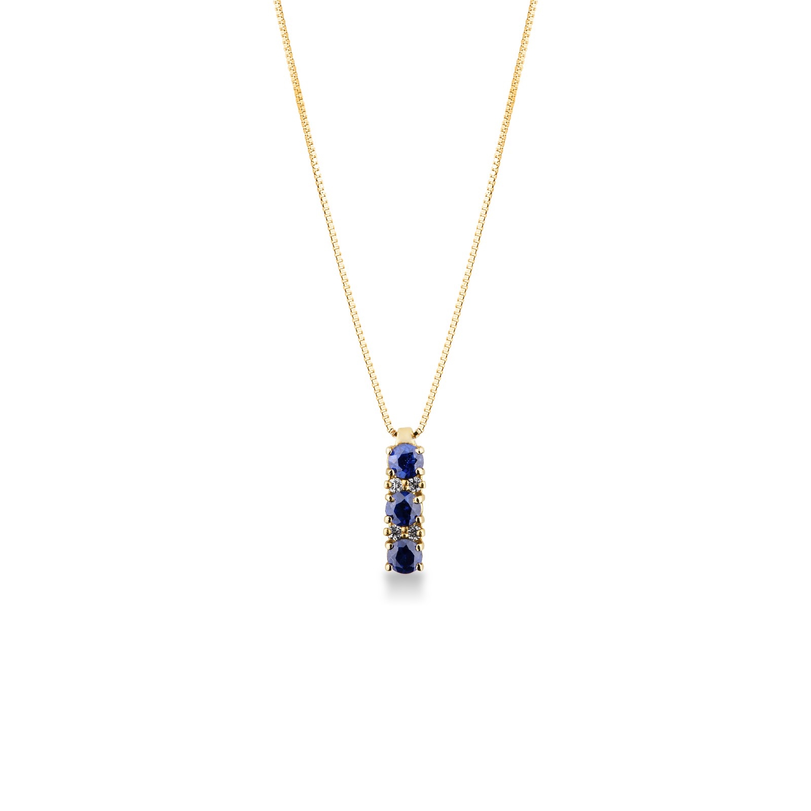 Collier or jaune 18k avec pendentif trilogy saphirs et diamant