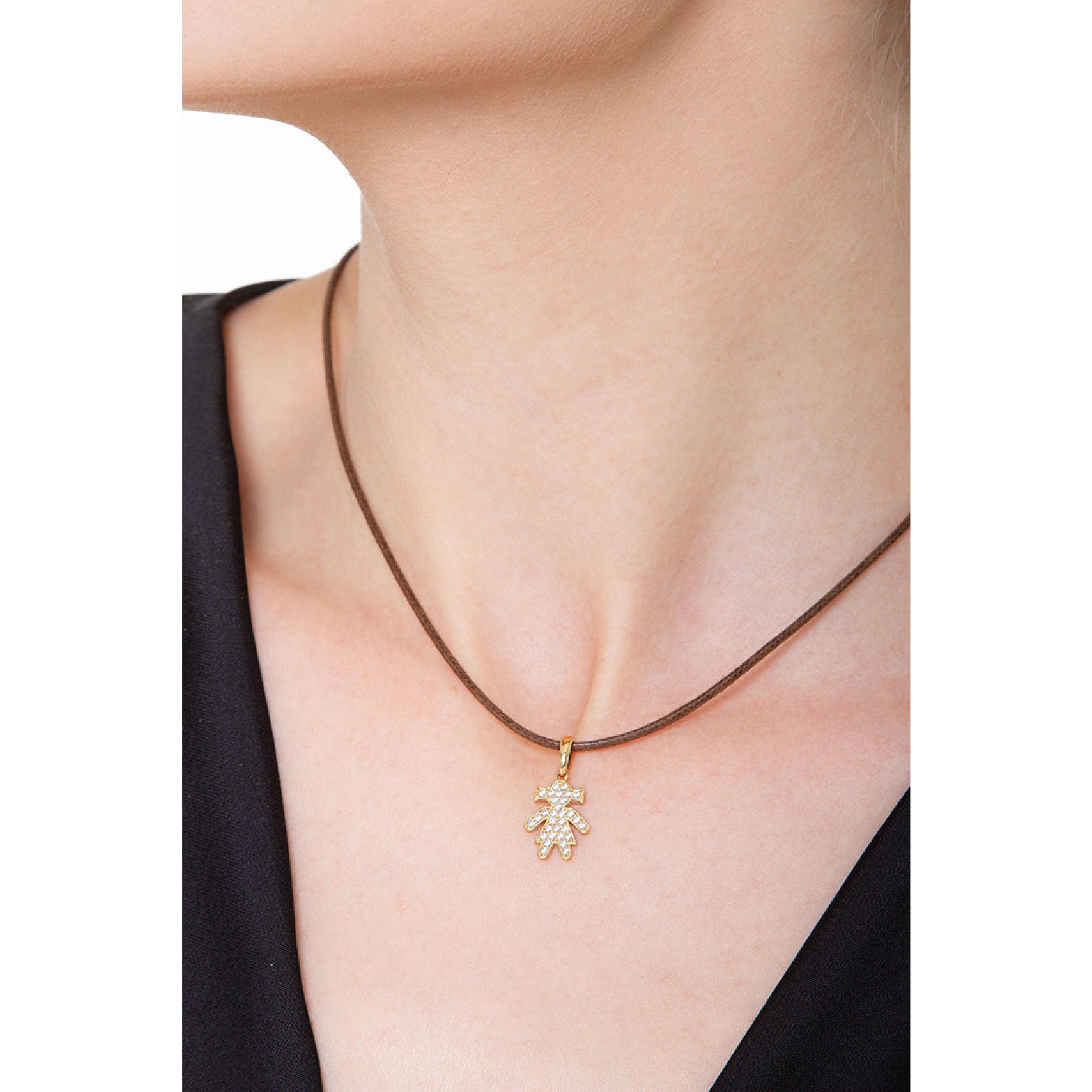 Pendentif fillette en or jaune 18k avec pavé de zircons