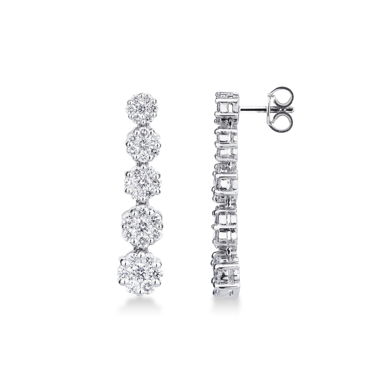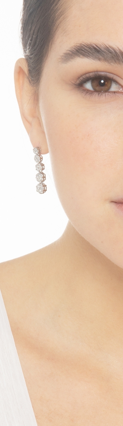 Boucles d'oreilles en or blanc 18k modèle illusion avec 5 fleurs