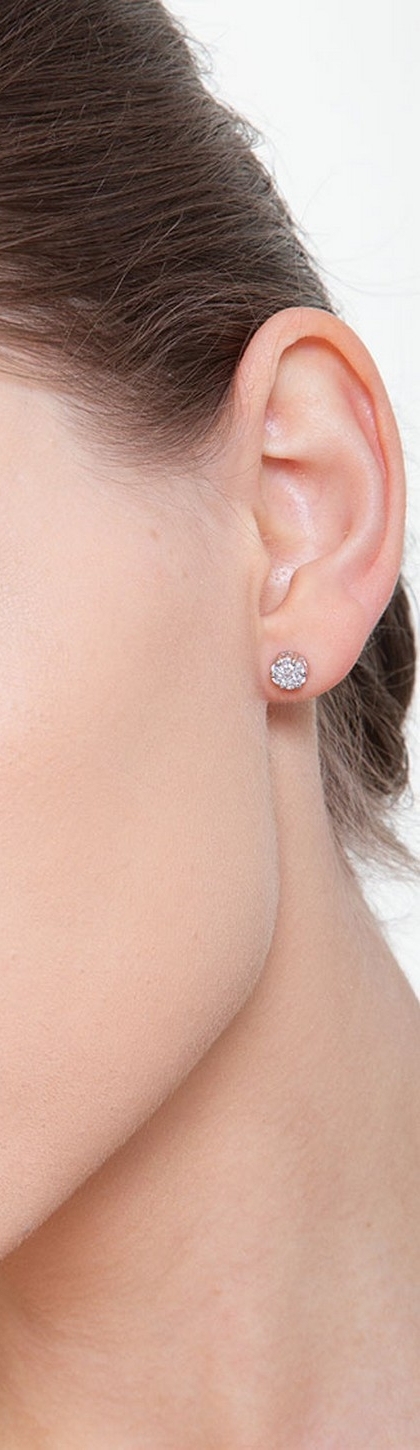 Boucles d'oreilles illusion en or blanc 18k avec diamants