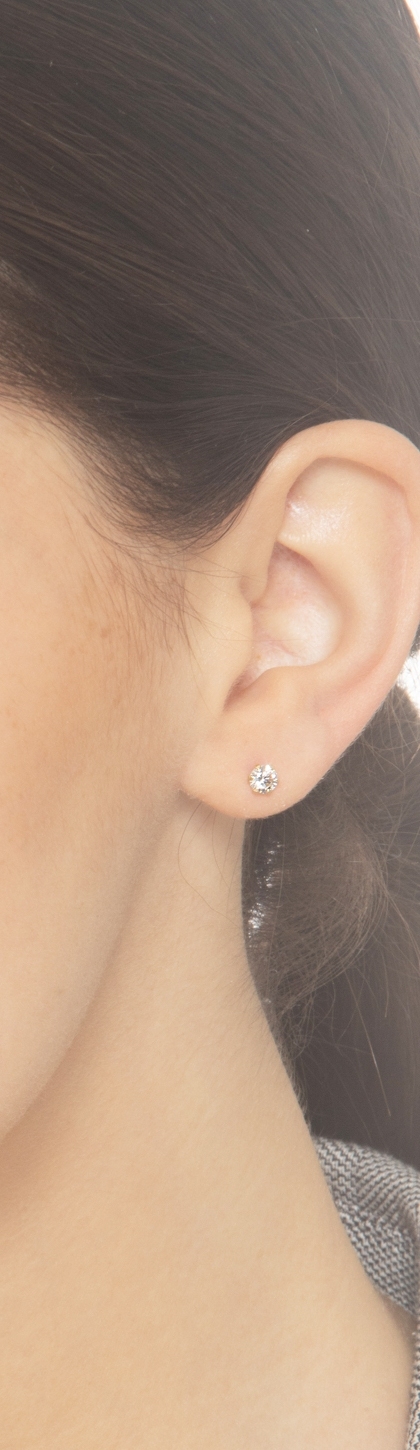 Boucles d’oreilles à griffes en or jaune 18k avec zircons, diamètre 4,15 mm