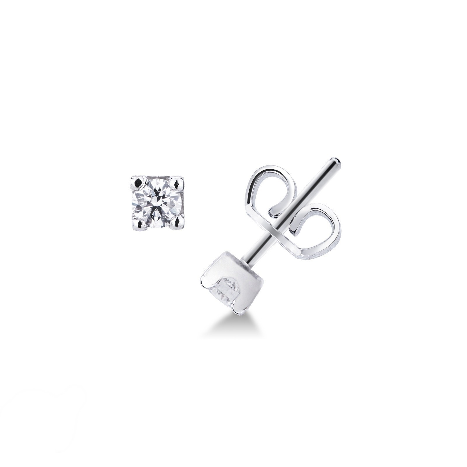 Boucles d'oreilles femme puce or blanc 750 4 griffes diamants 0.30 ct