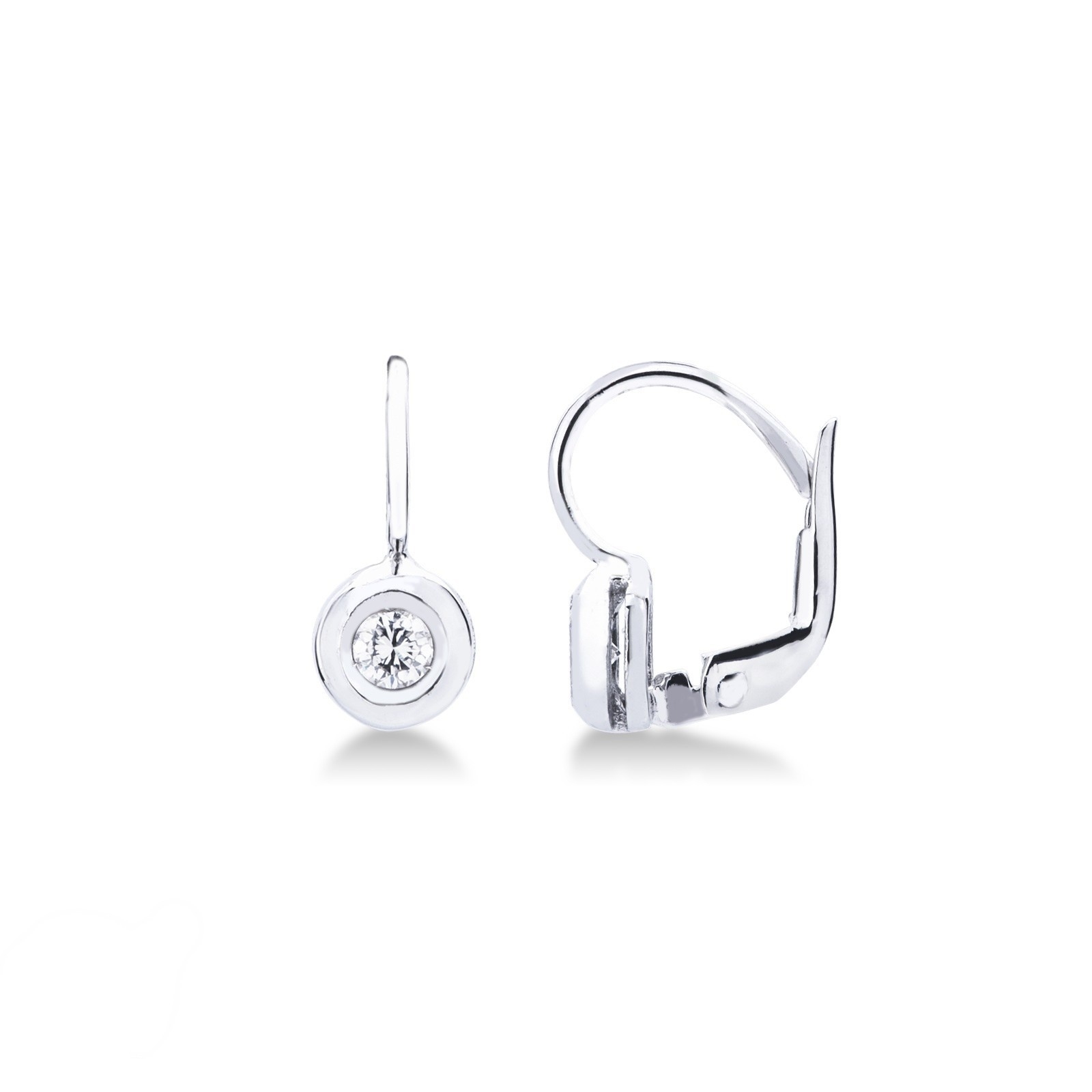 Boucles d'oreilles pendantes en or blanc 18K serties d'un diamant de 0,24 carat