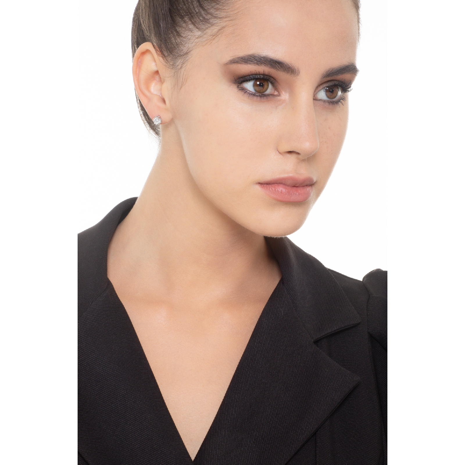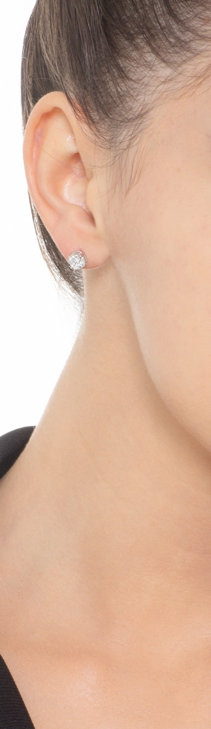 Boucles d’oreilles solitaire en or blanc 18k serties de diamants taille brillant, de couleur H et pureté VS. Élégance intemporelle et éclat raffiné