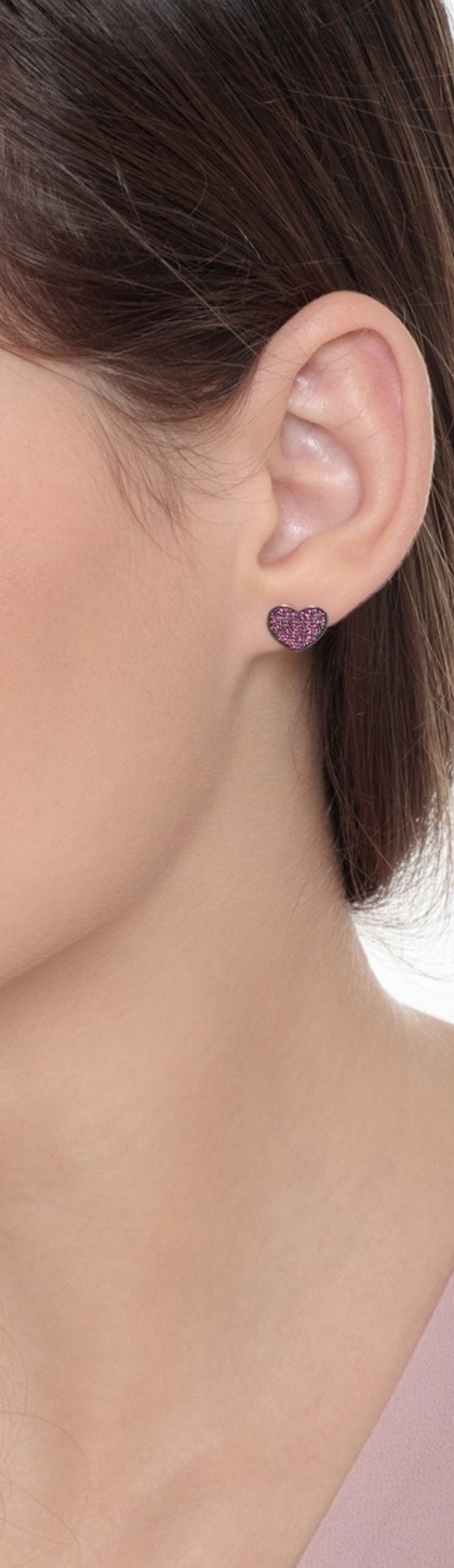 Boucles d’oreilles cœur en or blanc 18k avec rubis