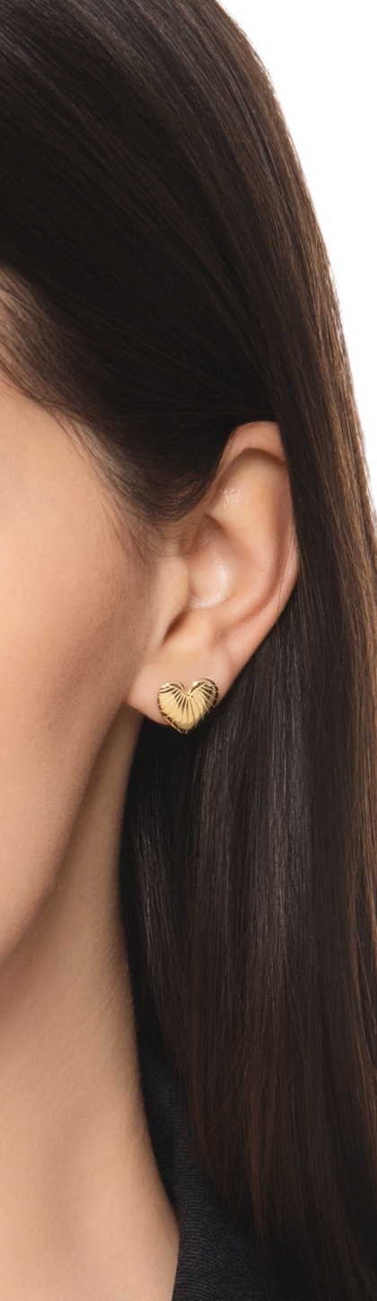 Boucles d’oreilles cœur rayé en or jaune 18k