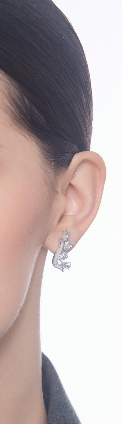Boucles d'oreilles design avec aigue-marines taille poire et diamants