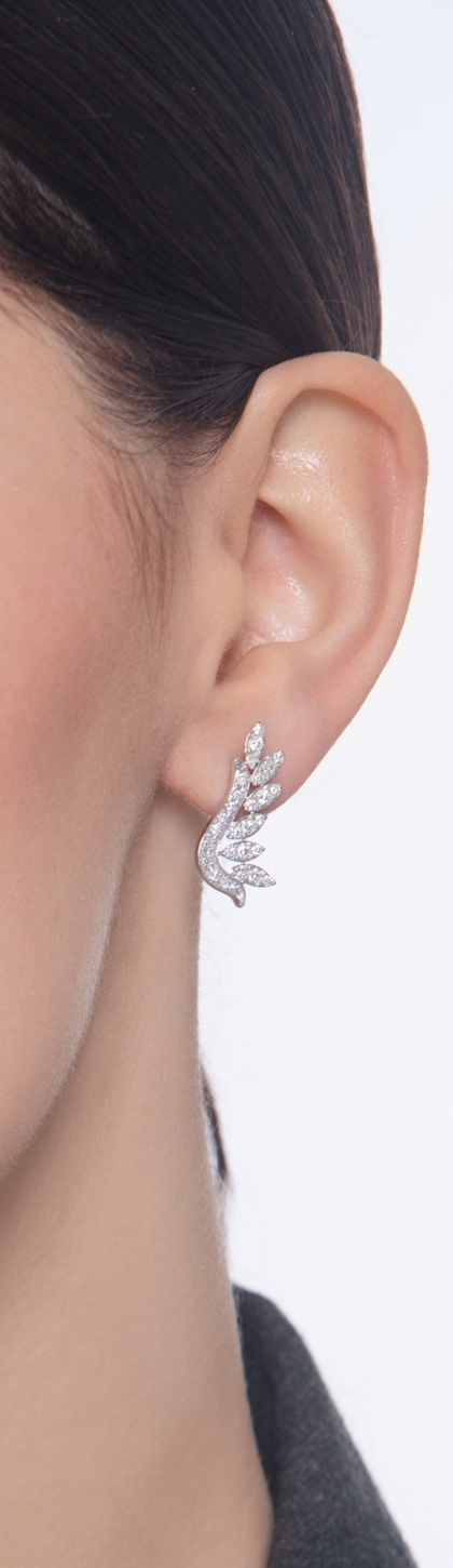 Boucles d'oreilles design feuilles en or blanc 18k serties de diamants