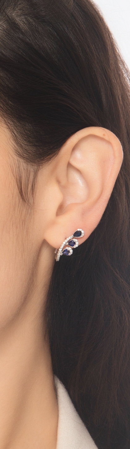 Boucles d’oreilles design or blanc 18k avec saphirs et diamants