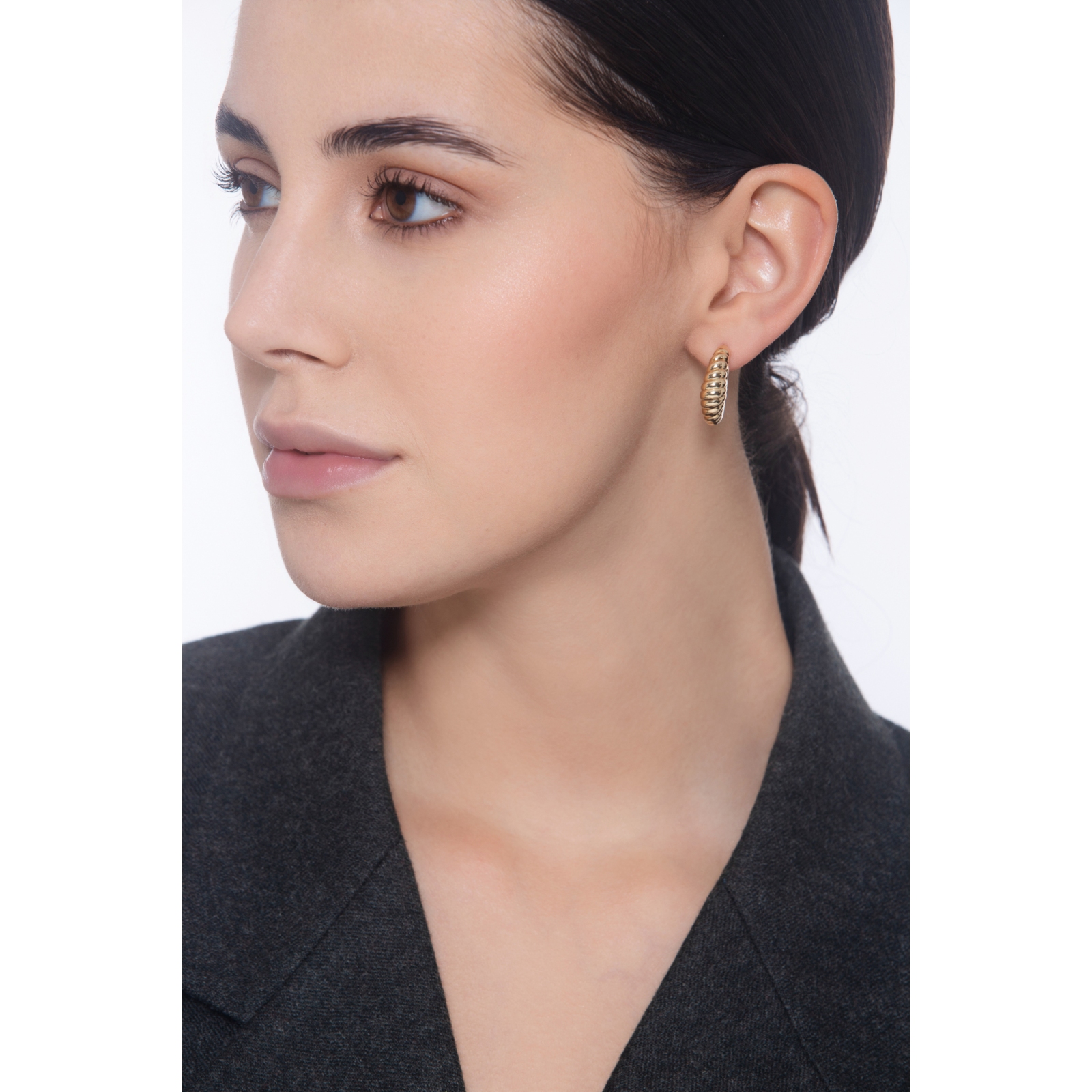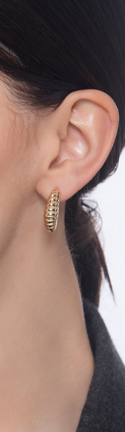 Boucles d'Oreilles en Forme de Lune Striée en Or Jaune 750