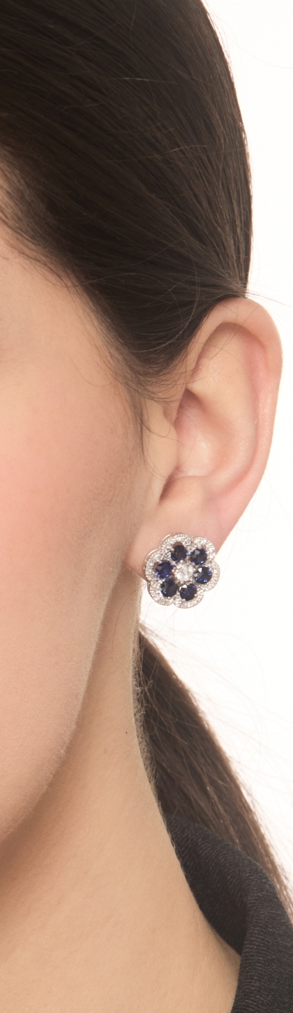 Boucles d’oreilles en or avec fleur saphirs bleus et diamants