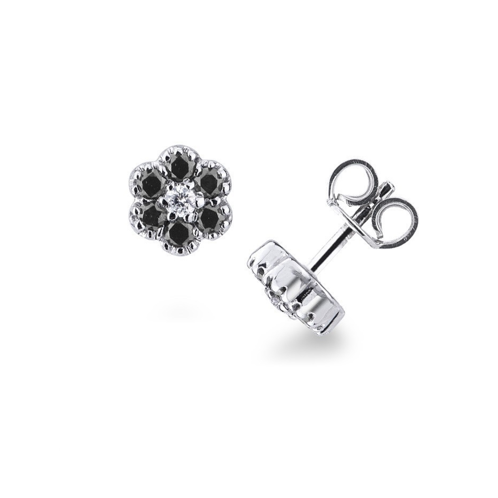Boucles d’oreilles en or blanc 18 carats avec diamants noirs