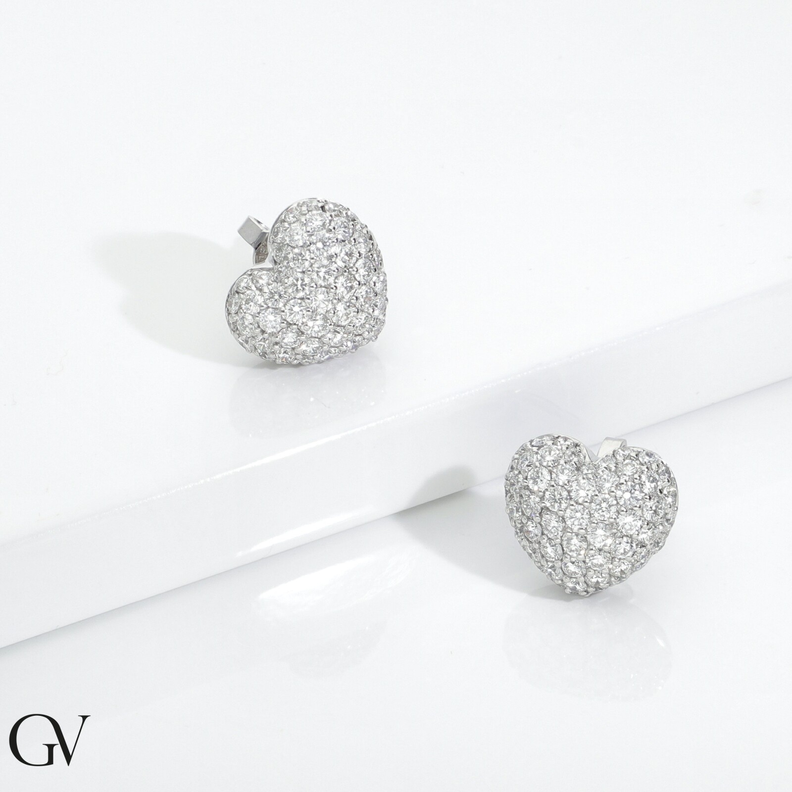 Boucles d'oreilles en or blanc 18 carats cœur bombé diamants