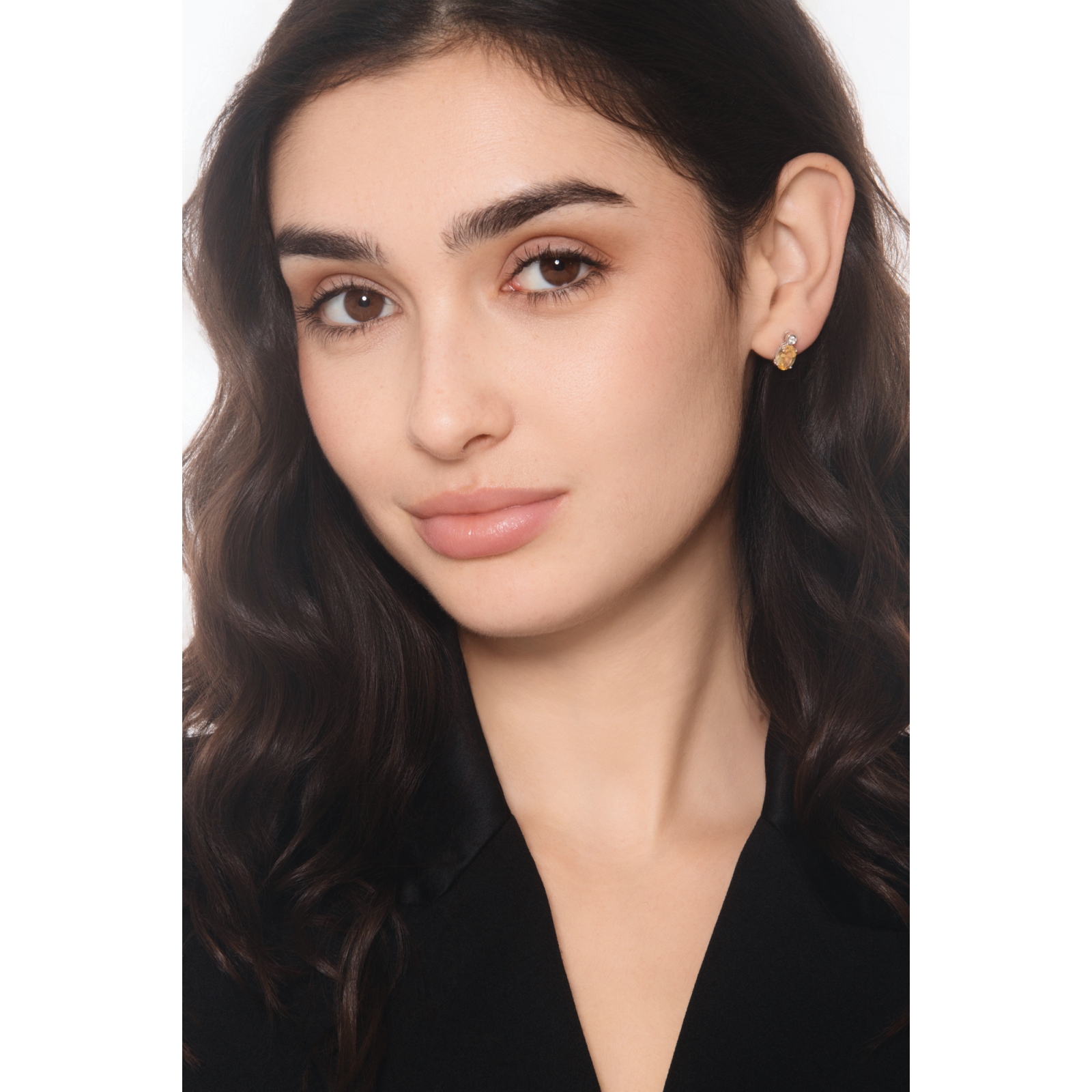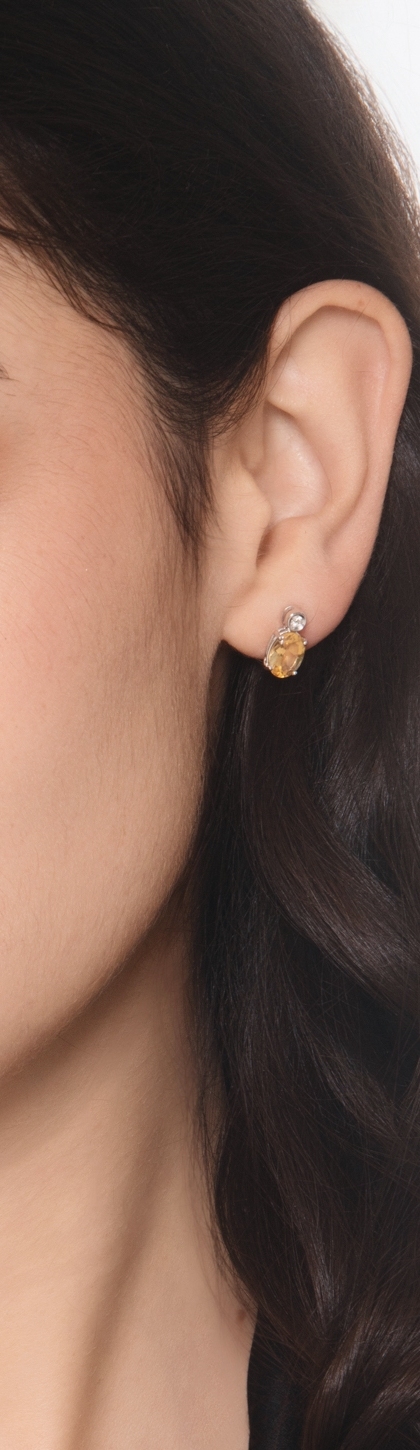 Boucles d’oreilles en or blanc avec citrine ovale et diamant
