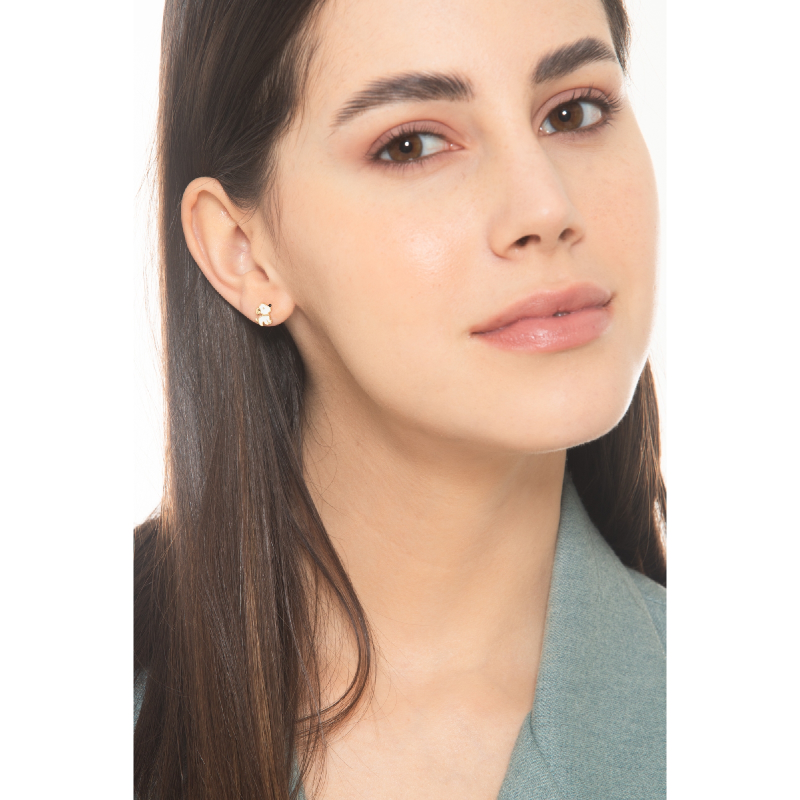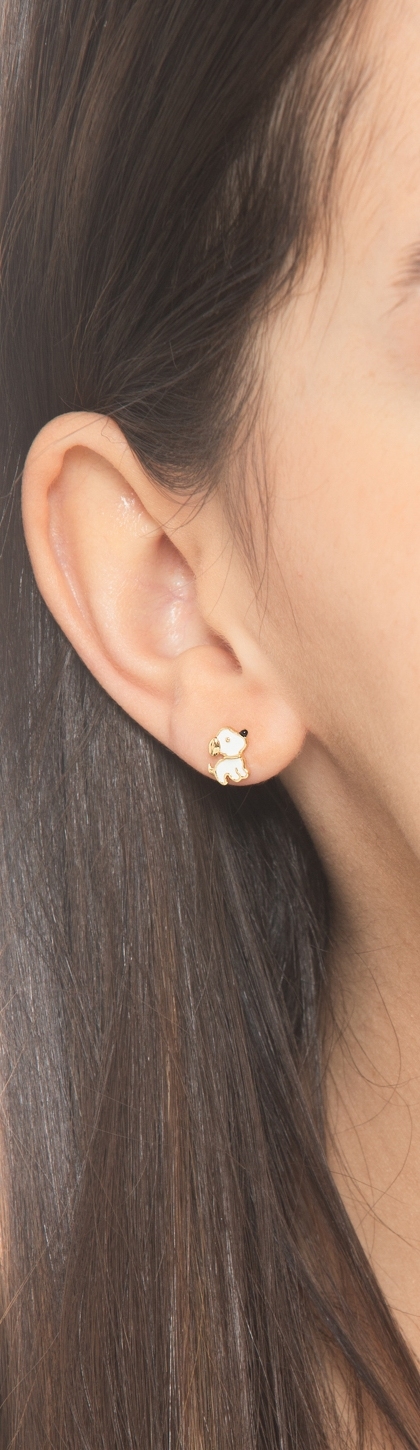 Boucles d’oreilles en or jaune 18k avec chien émaillé blanc