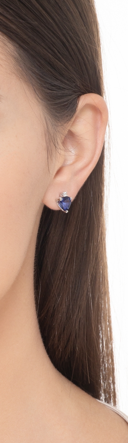Boucles d’oreilles en or18K avec saphirs bleus en cœur et diamants