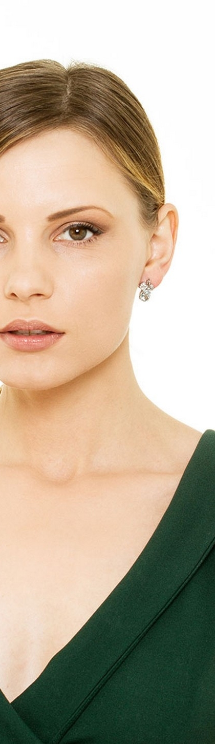 Boucles d’oreilles feuille en or blanc 750 avec aigue-marine et diamants