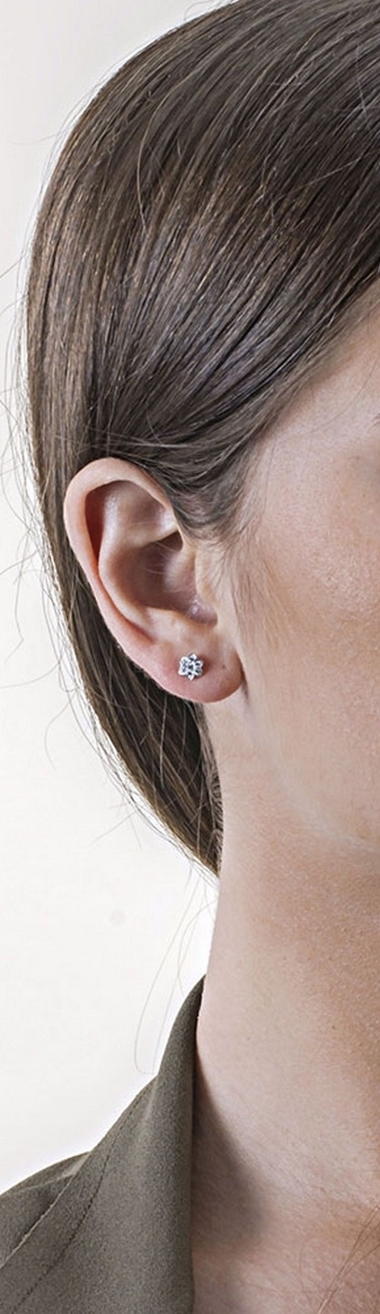 Boucles d’oreilles fleur en or blanc 18k avec zirconiums