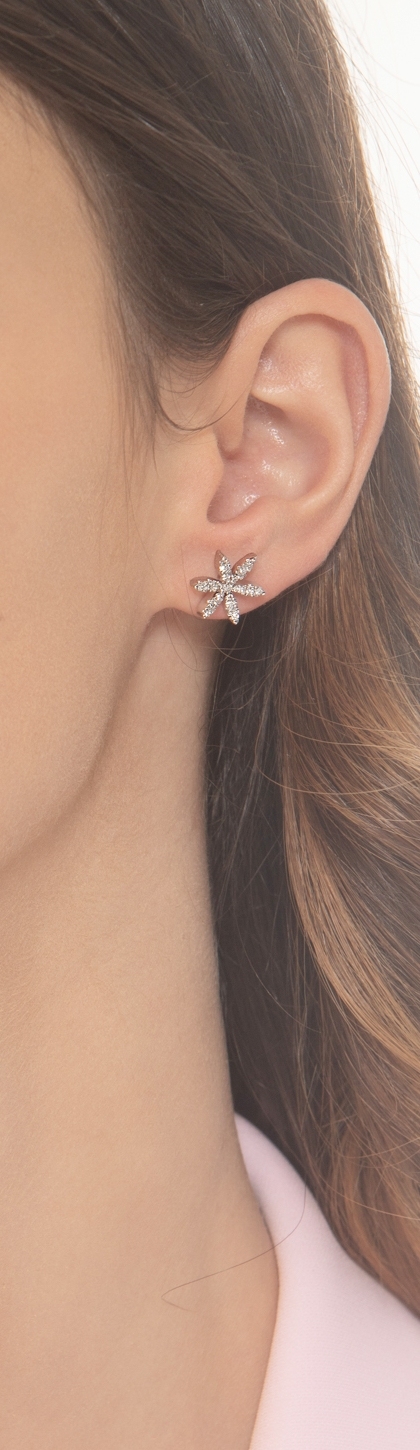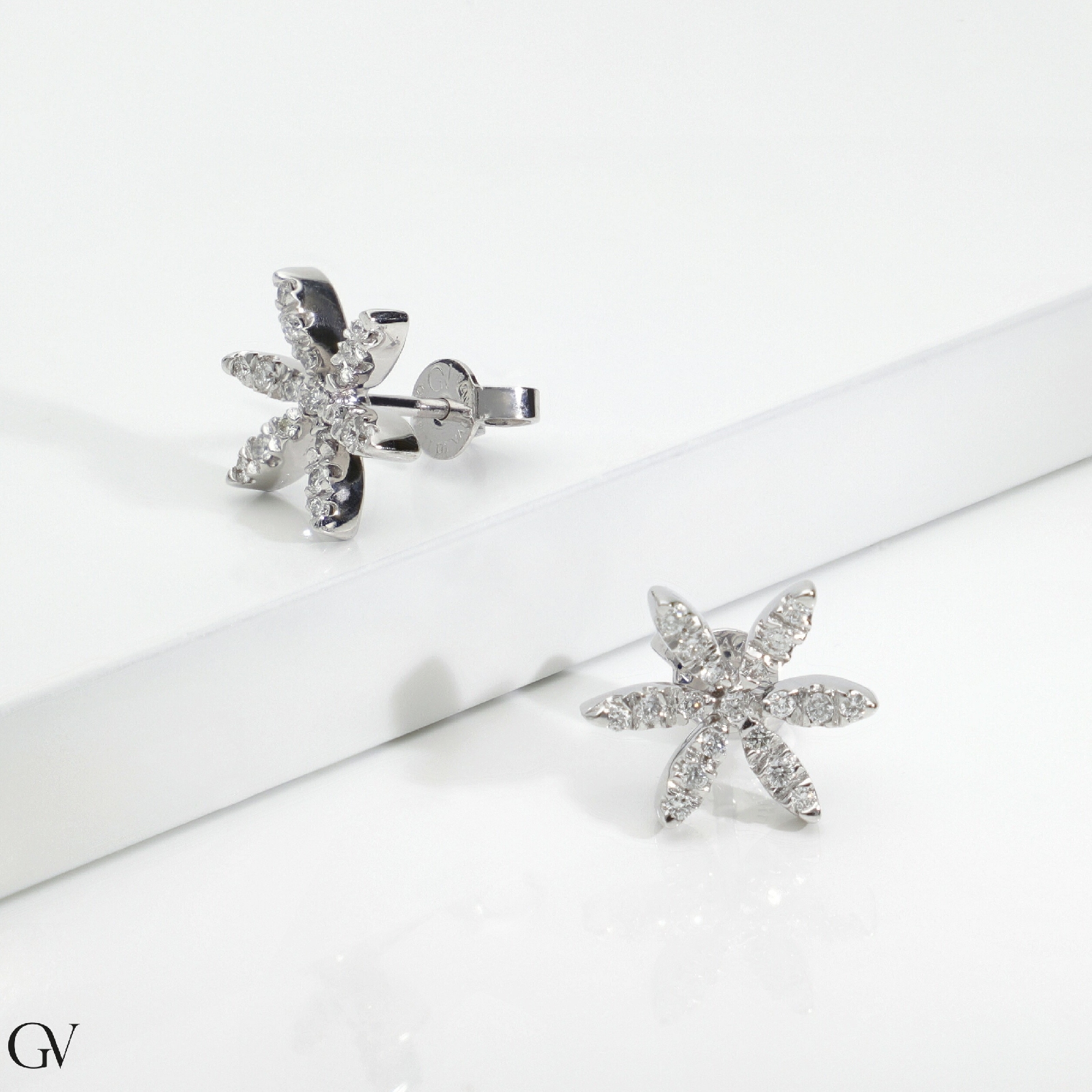 Boucles d’oreilles fleur en or blanc 18k en diamants