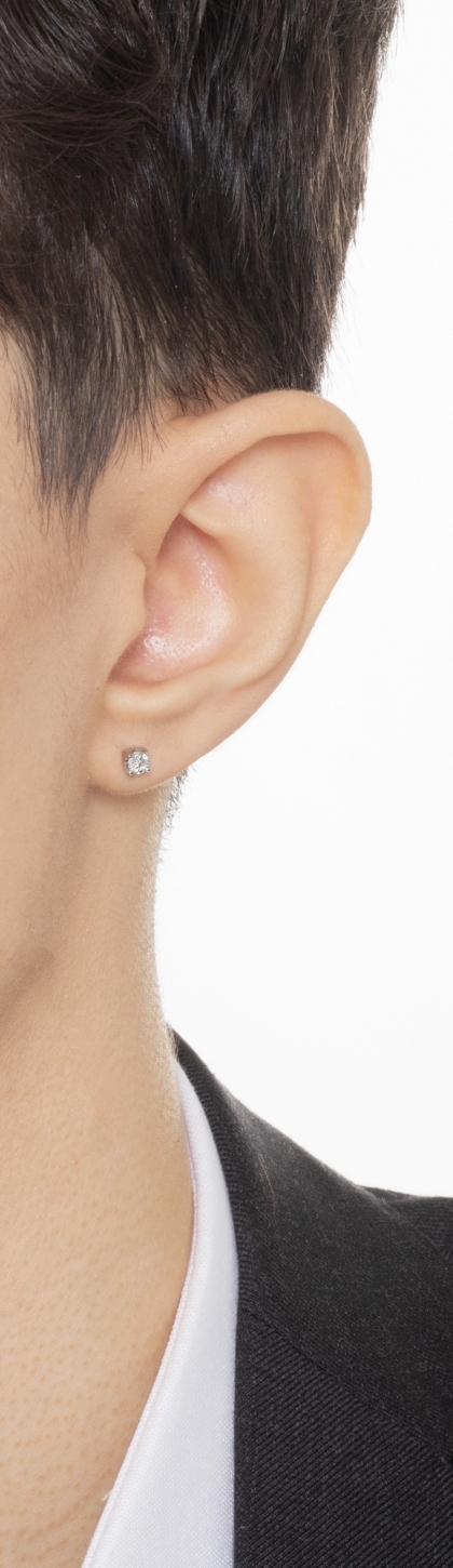 Clou d'oreille mono or blanc 18k et diamant
