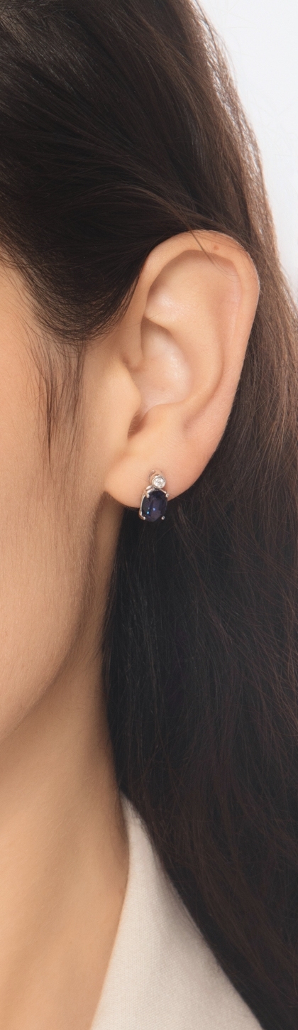 Puces en or blanc 18k avec diamants et saphirs bleus