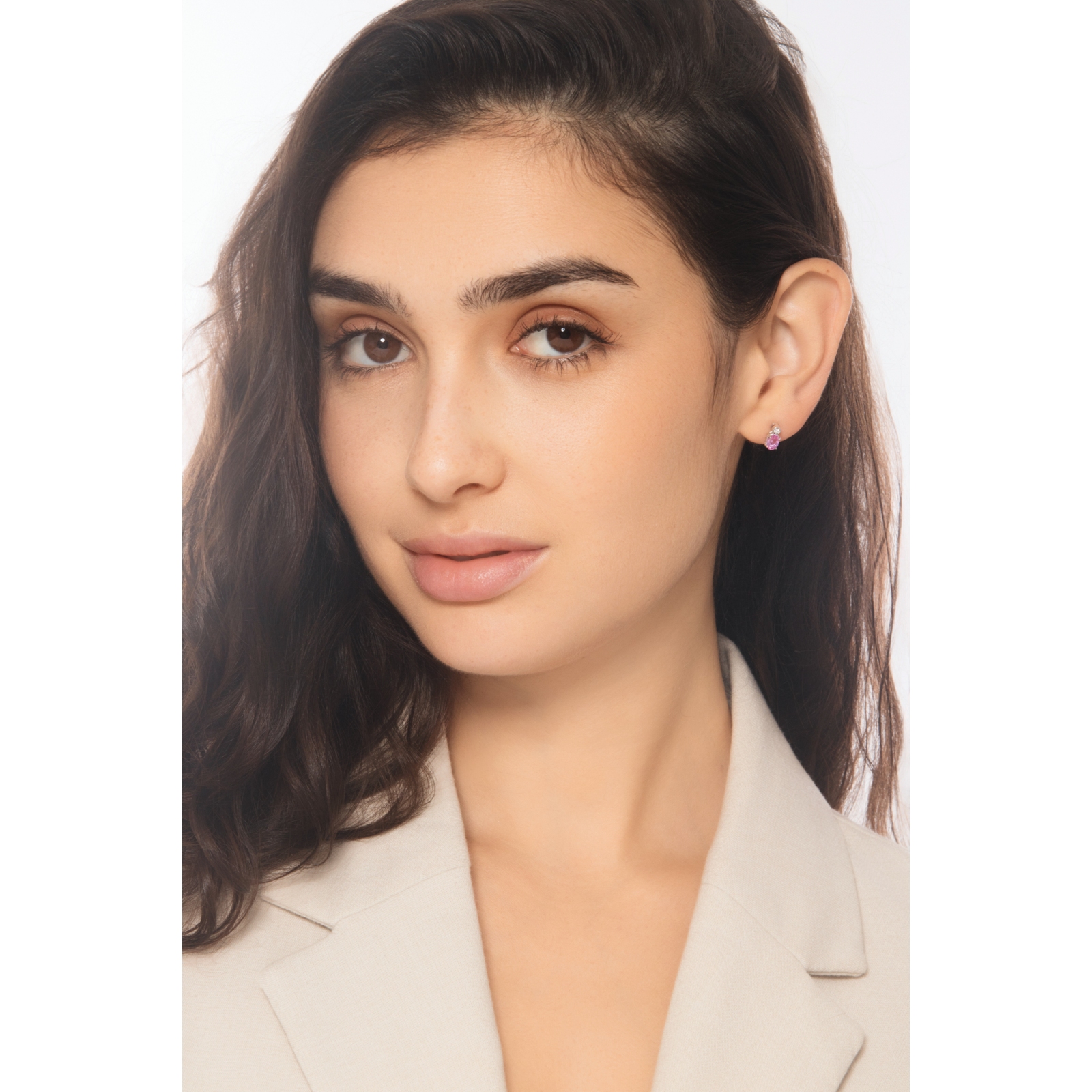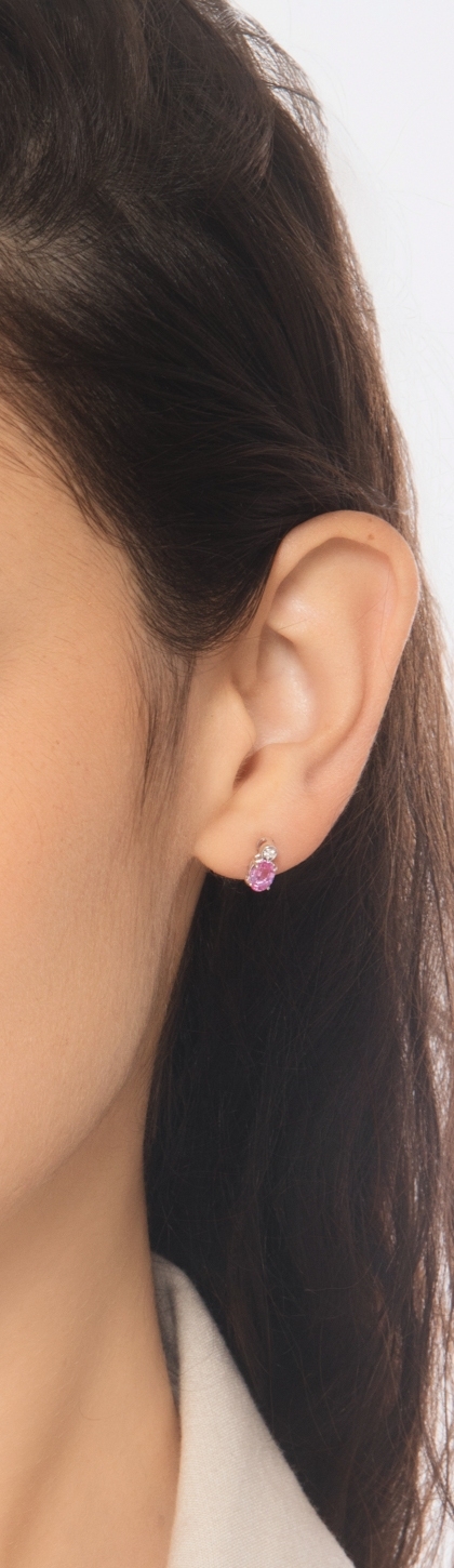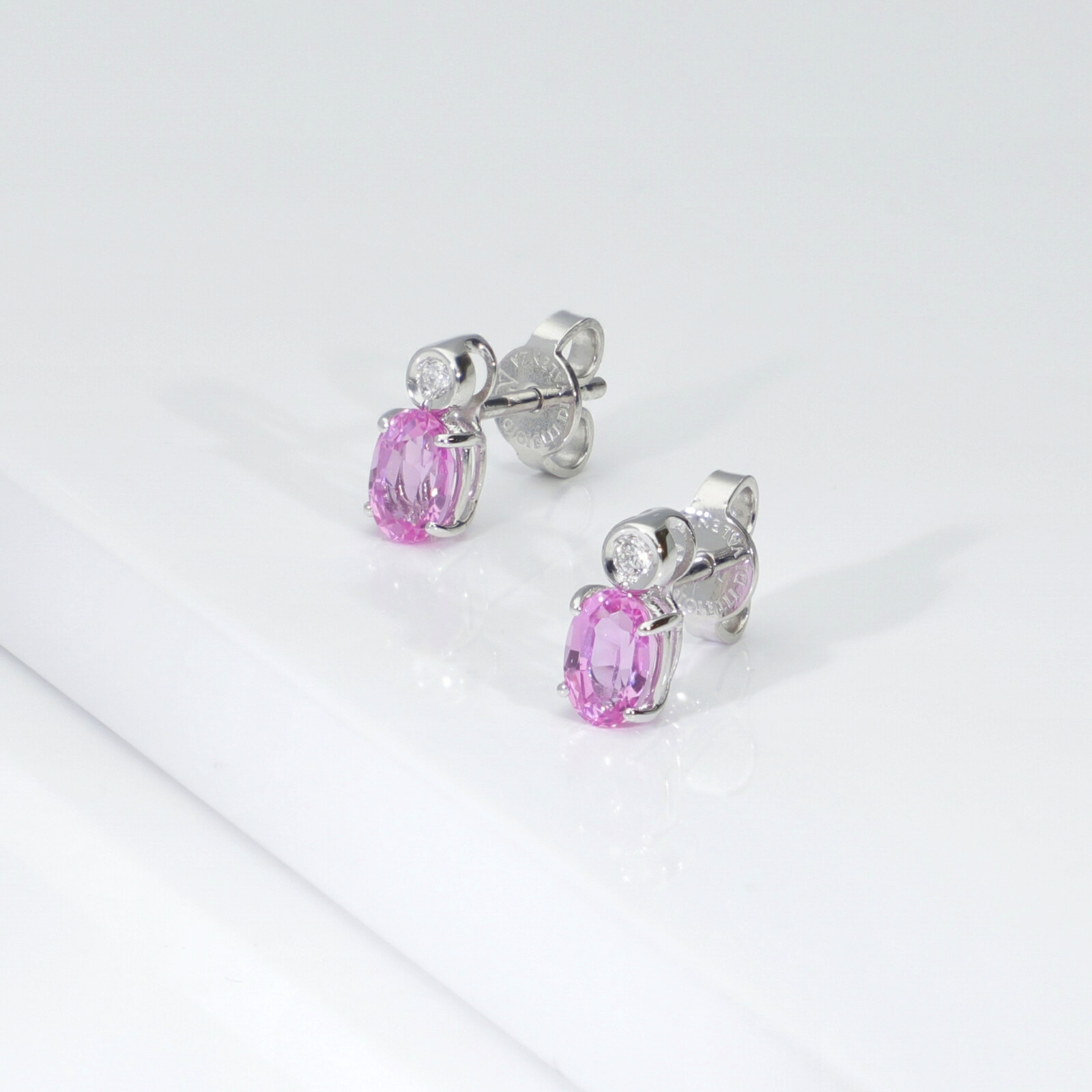 Puces en or blanc 18k avec saphir rose ovale et diamant