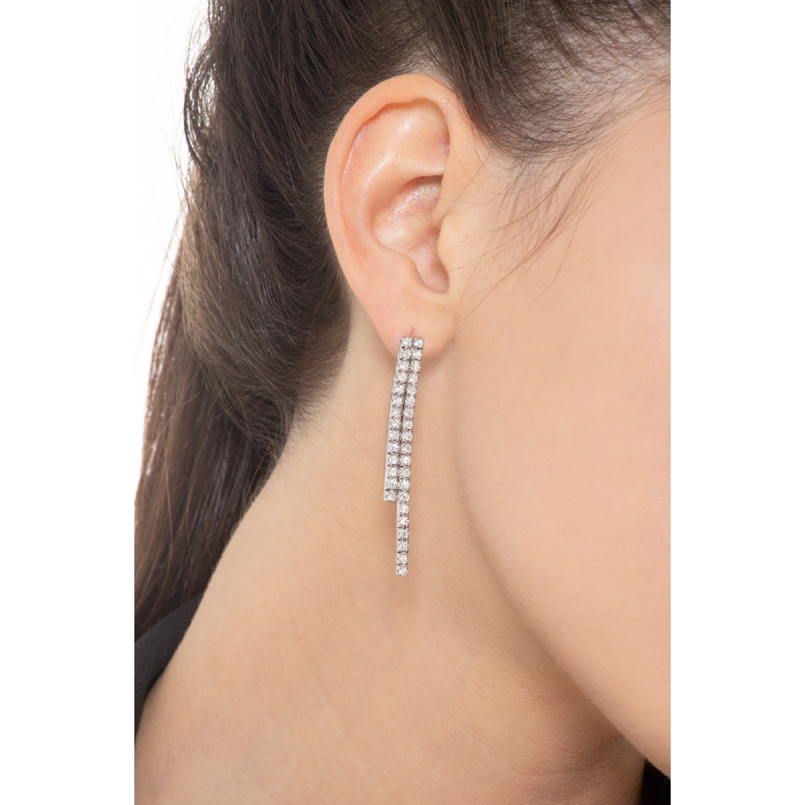 Boucles d'oreille tennis 2 rangées de diamants or blanc 18k