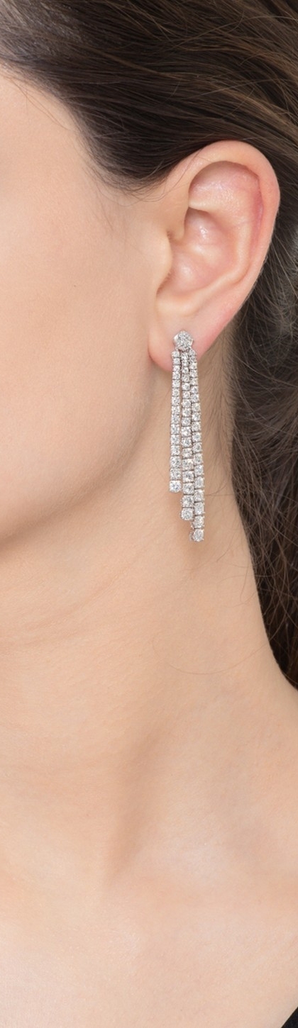 Boucles d'oreilles rivière à trois rangées en or blanc 18k et diamants