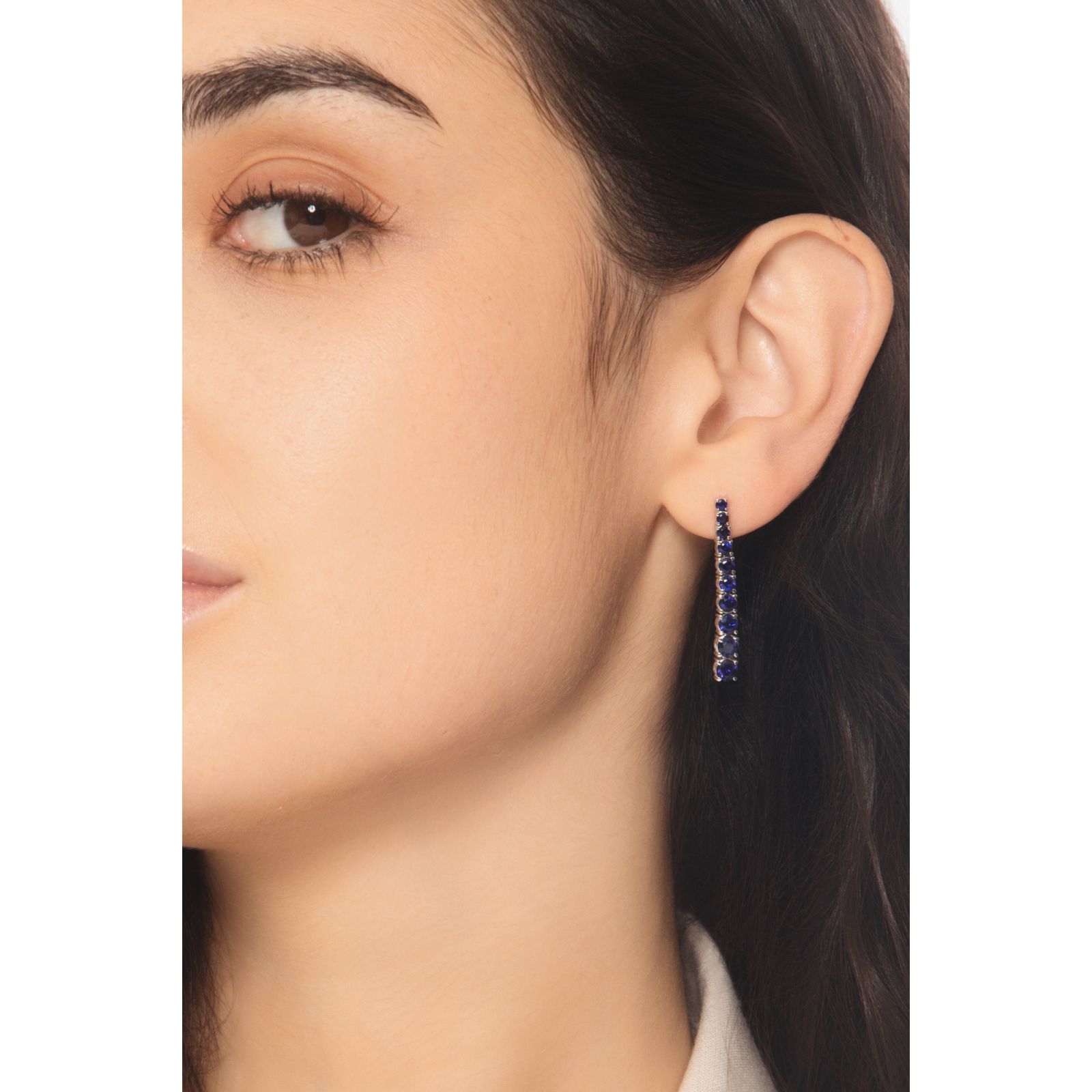 Boucles d’oreilles tennis à dégradé en or blanc 18k avec saphirs bleus