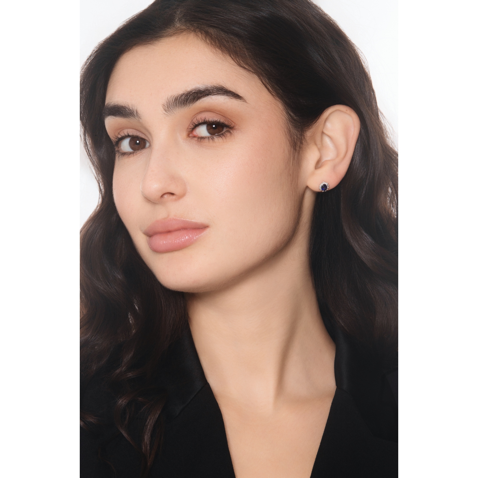 Boucles d’oreilles contournées en or blanc 18k avec saphir bleu et diamants