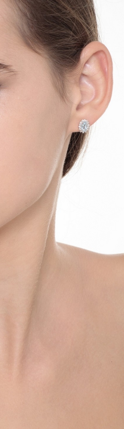 Boucles d'Oreilles en Or Blanc 18k avec AigueMarine Ovale et Diamants