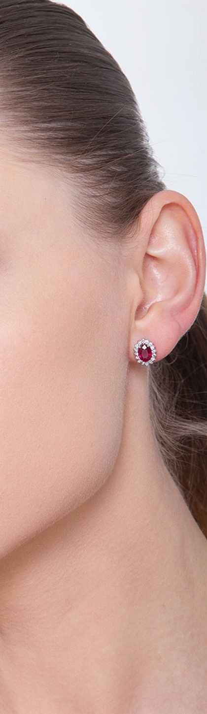 Boucles d’oreilles en or blanc 18k avec rubis ovales et diamants