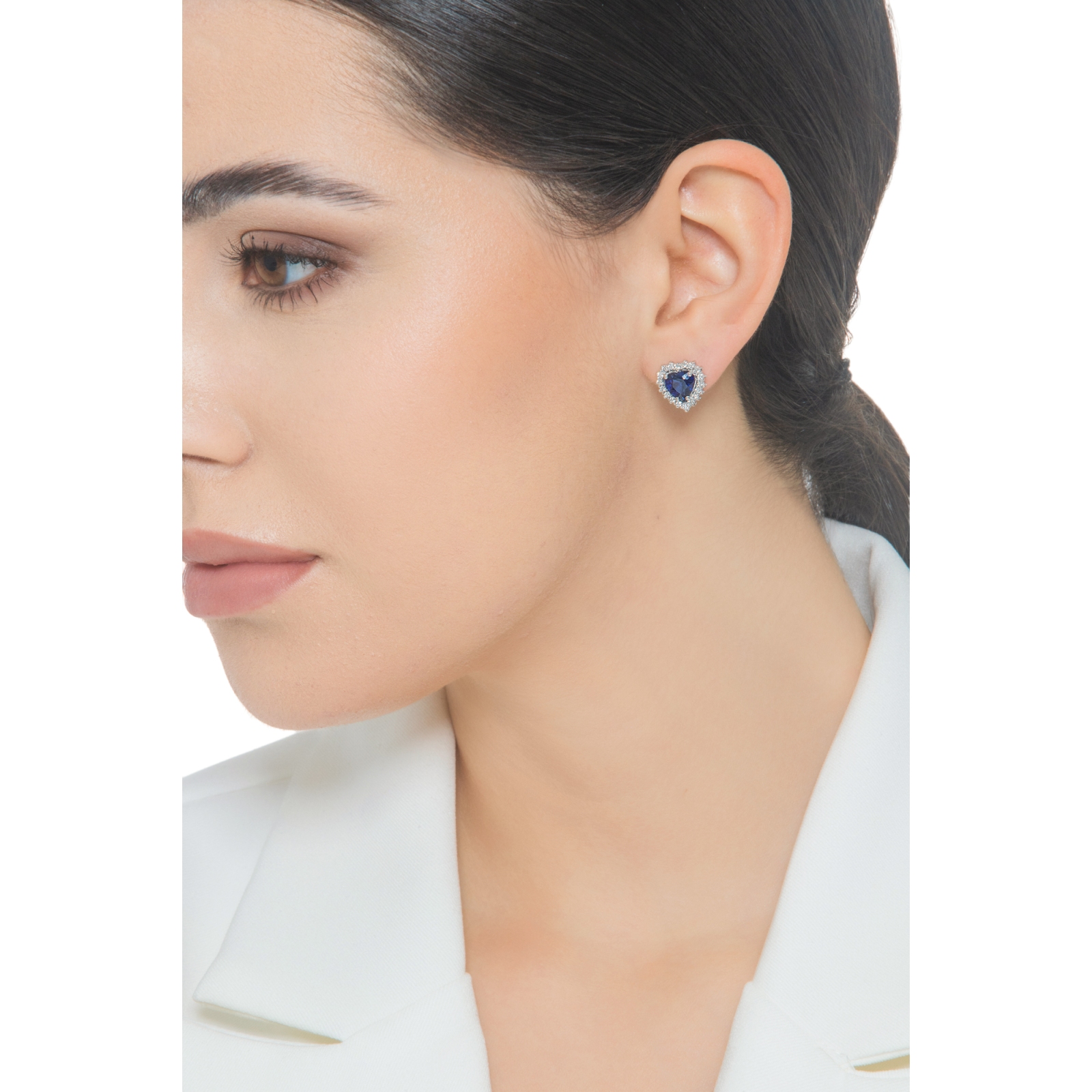 Boucles d’oreilles en or blanc 18k avec saphir bleu