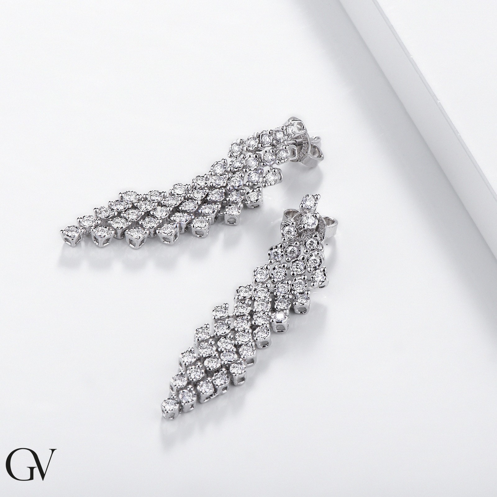 Boucles d'oreilles à maillons souples en or blanc 18k et diamants