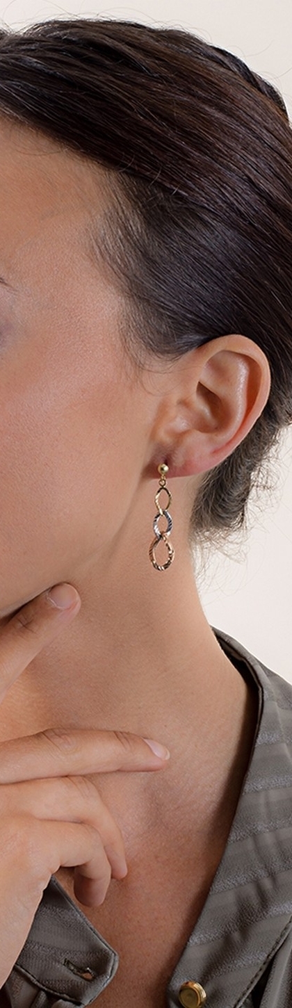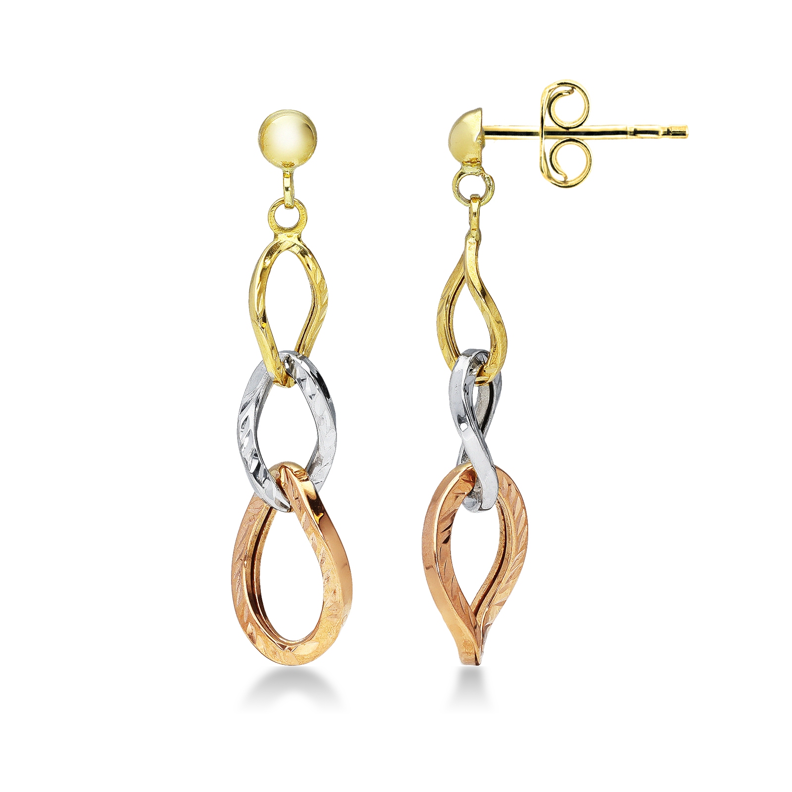 Boucles d’oreilles chaîne en or jaune, blanc et rose 18k diamanté