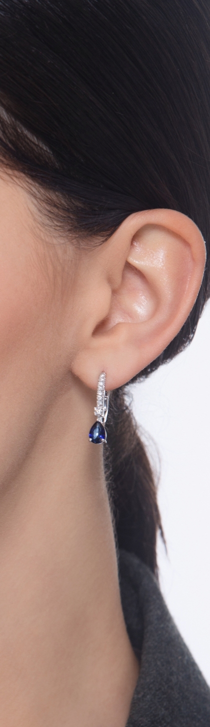 Boucles d’oreilles dormeuses en or 18k avec saphir bleu et diamants