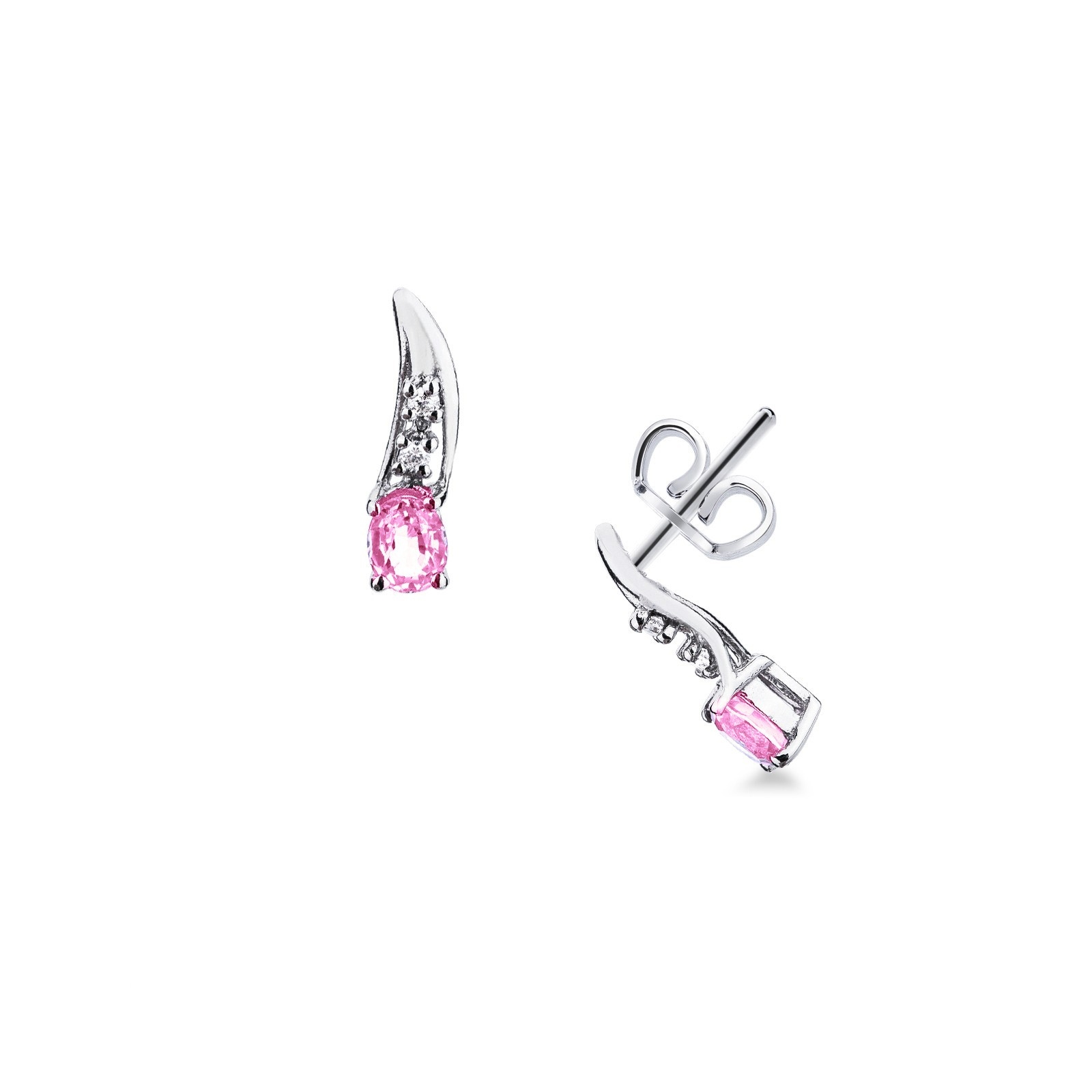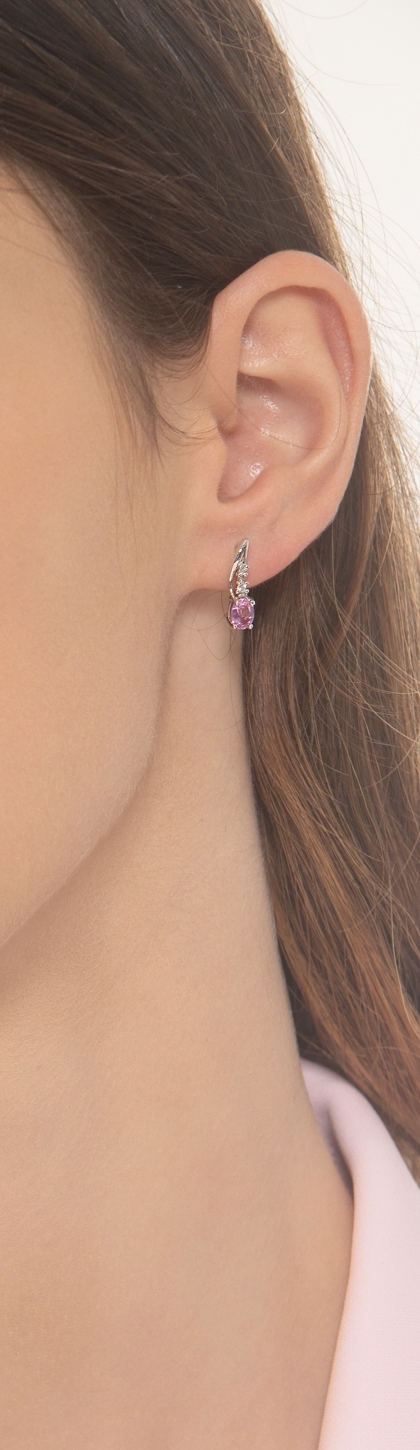 Boucles d'oreilles en or blanc 18 carats avec saphir rose et diamants