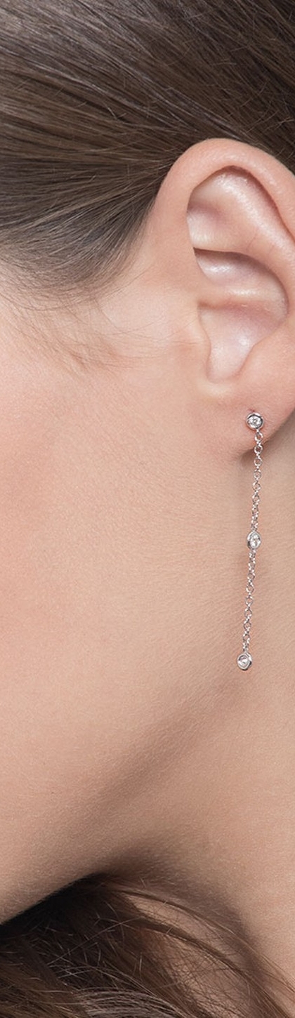 Boucles d'oreilles en or blanc 18k avec diamants, cm 4