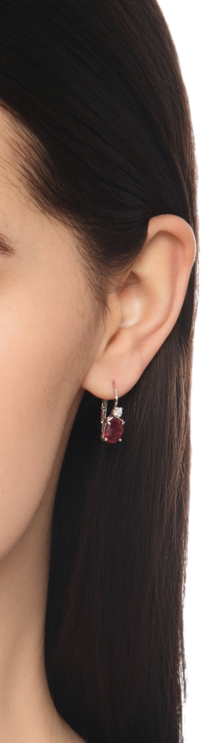 Boucles d'oreilles en or blanc 18k avec diamants et rubis taille ovale