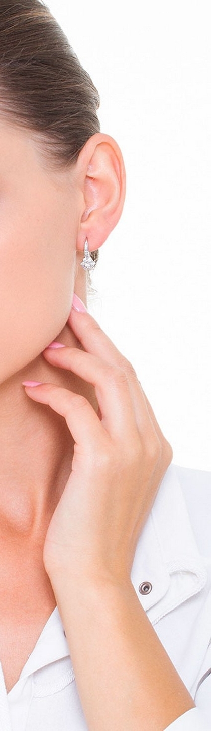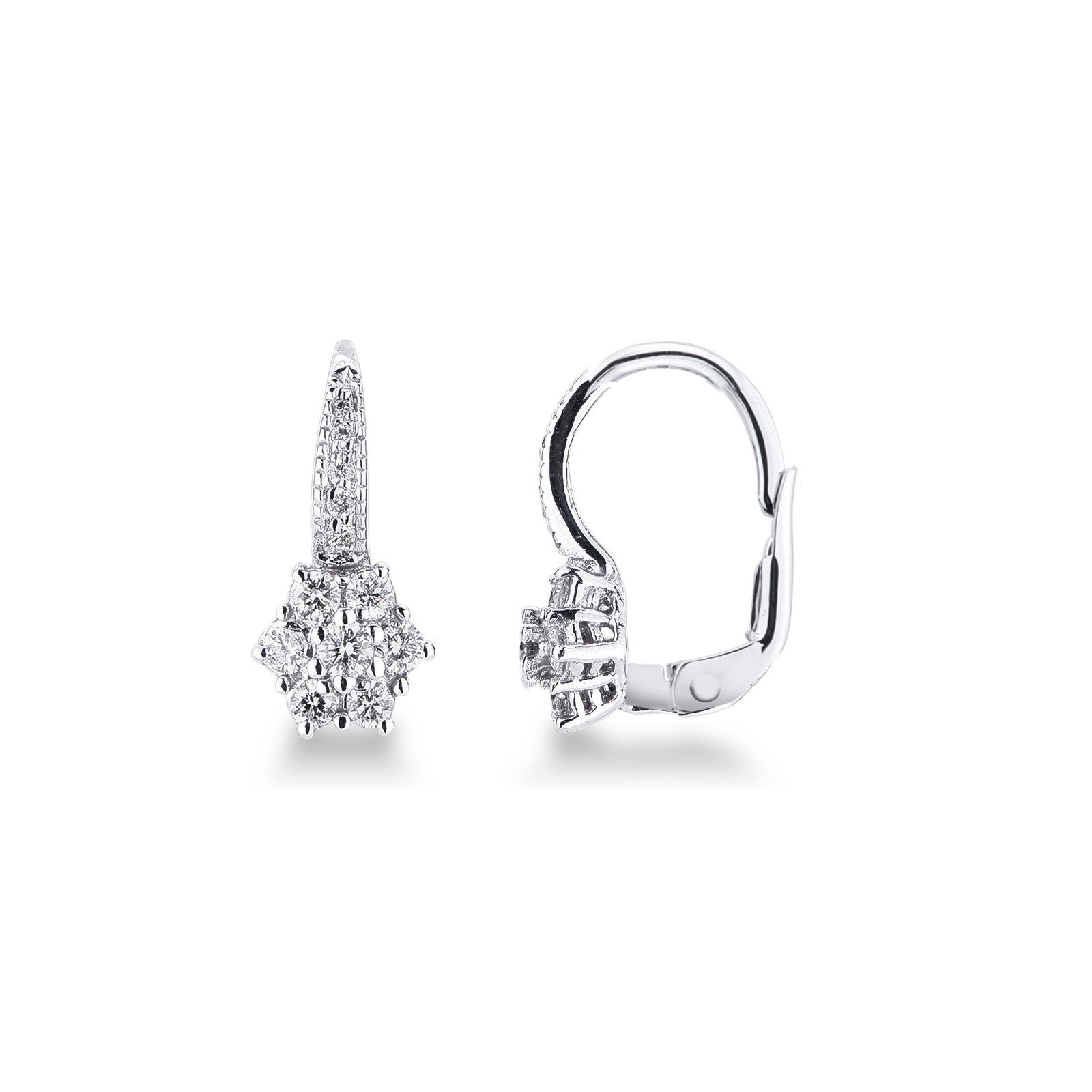 Boucles d oreilles en or blanc 18K motif fleur et diamants