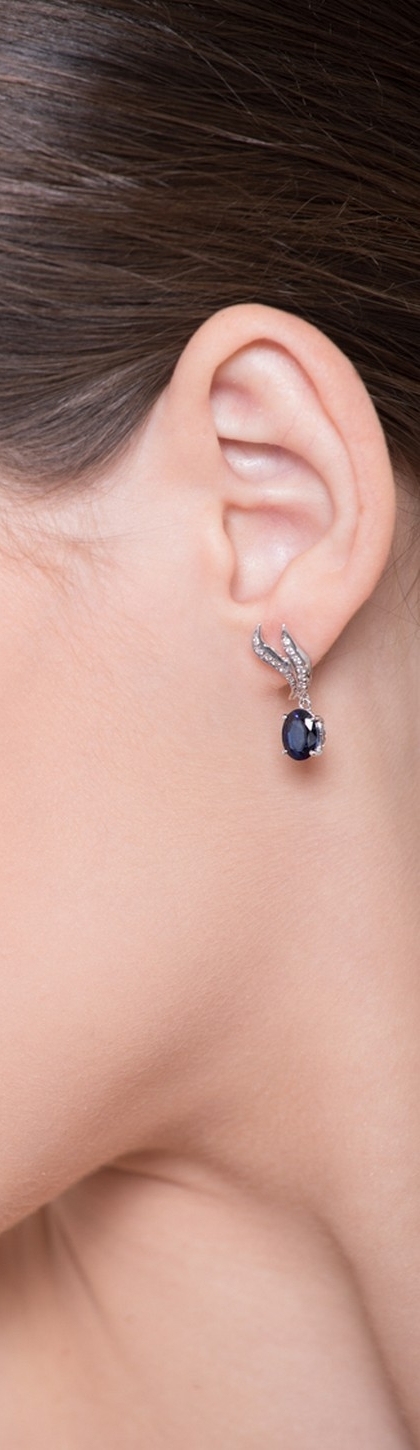 Boucles d'oreilles en or blanc 18k serties de diamants et saphirs bleus