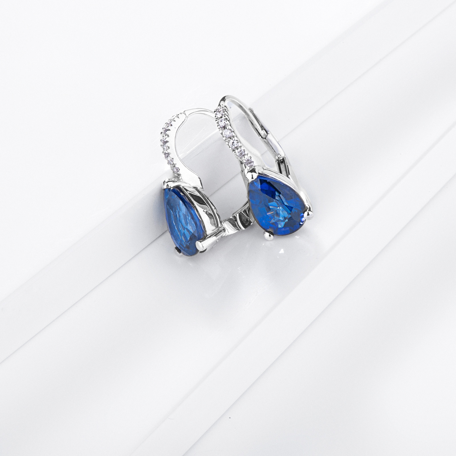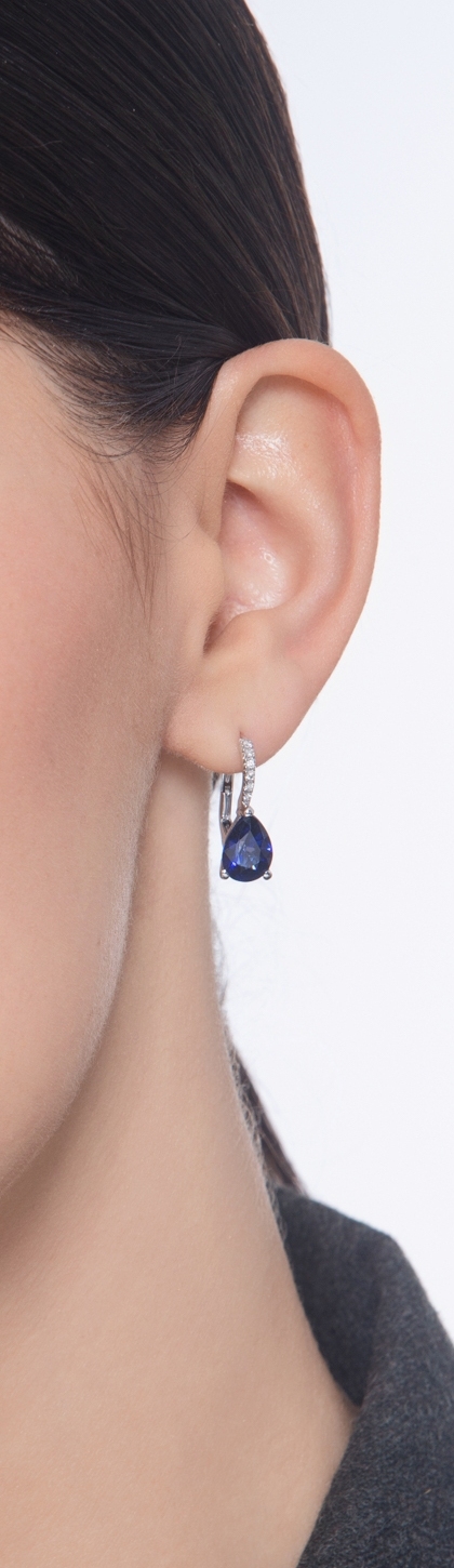Boucles d’oreilles en or blanc 750 avec saphir bleu poire et diamants
