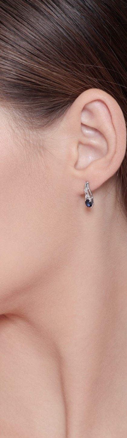 Boucles d’oreilles en or blanc 750 avec saphirs ovales et diamants