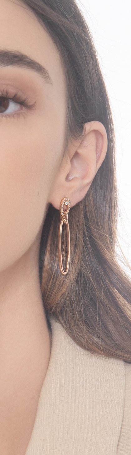 Boucles d’oreilles en or rose 18k avec pendentifs ovales et diamants