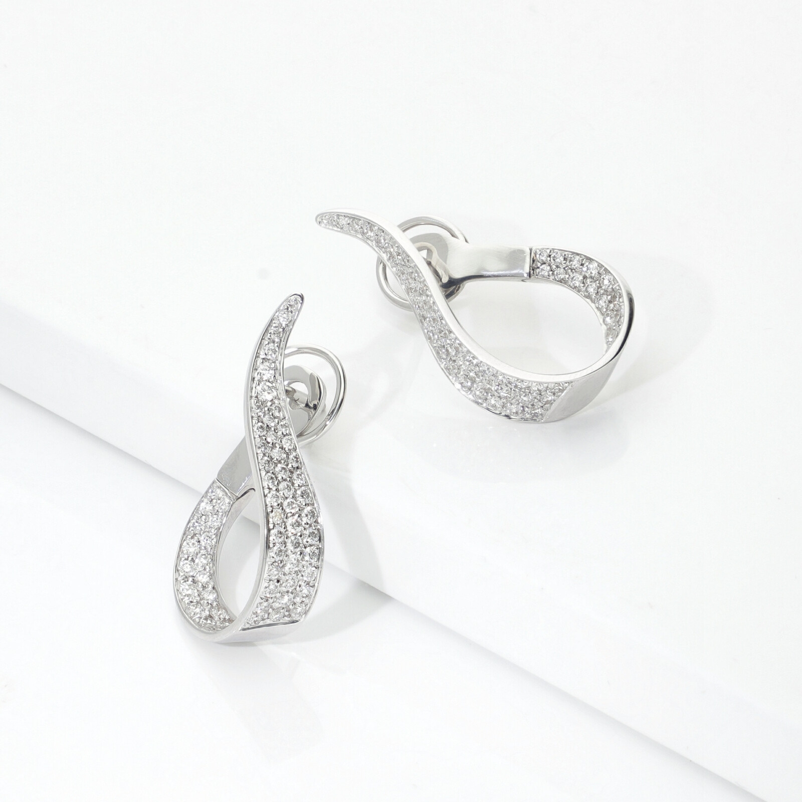 Boucles d’oreilles goutte sinueuse en or blanc 18k avec diamants