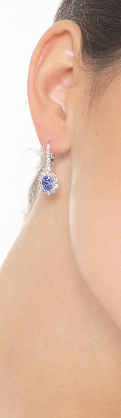 Boucles d'oreilles halo en or blanc 18k avec tanzanites