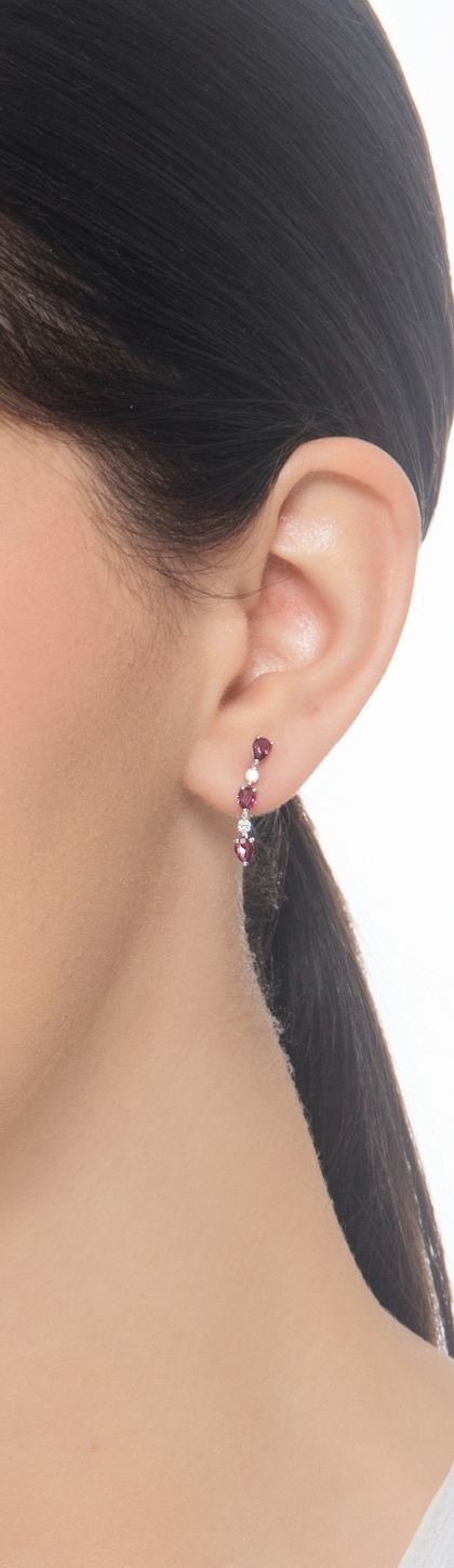 Boucles d’oreilles or blanc 18k avec rubis poire et diamants