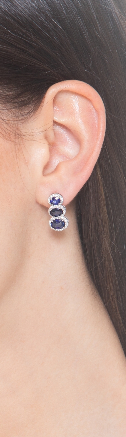 Boucles d'oreilles or blanc 18k avec saphirs ovales et diamants